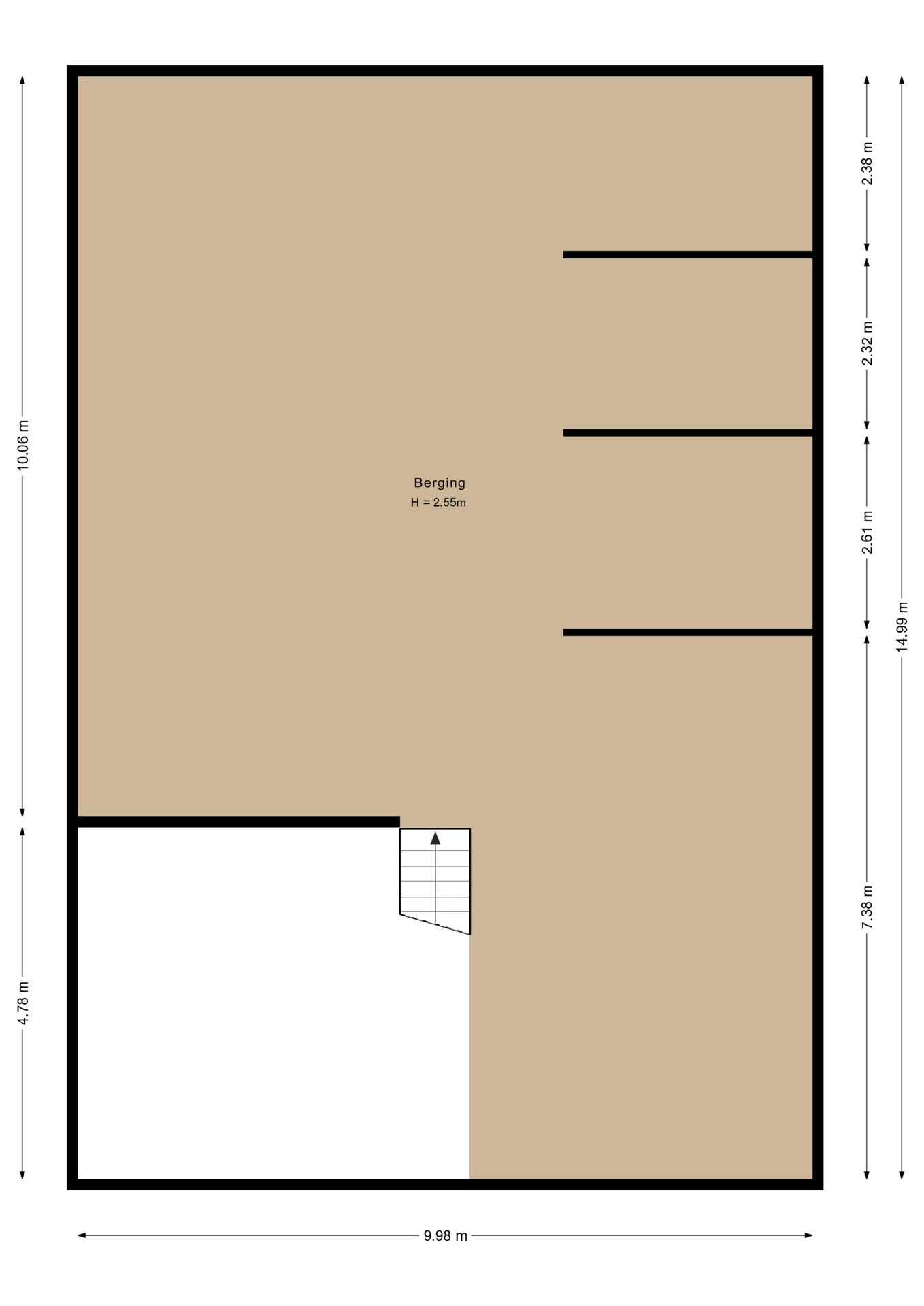 * De bedrijfsruimte is voorzien van een overheaddeur (4,0 x 3,5 m.) en heeft een vrije hoogte van 5,0 m.