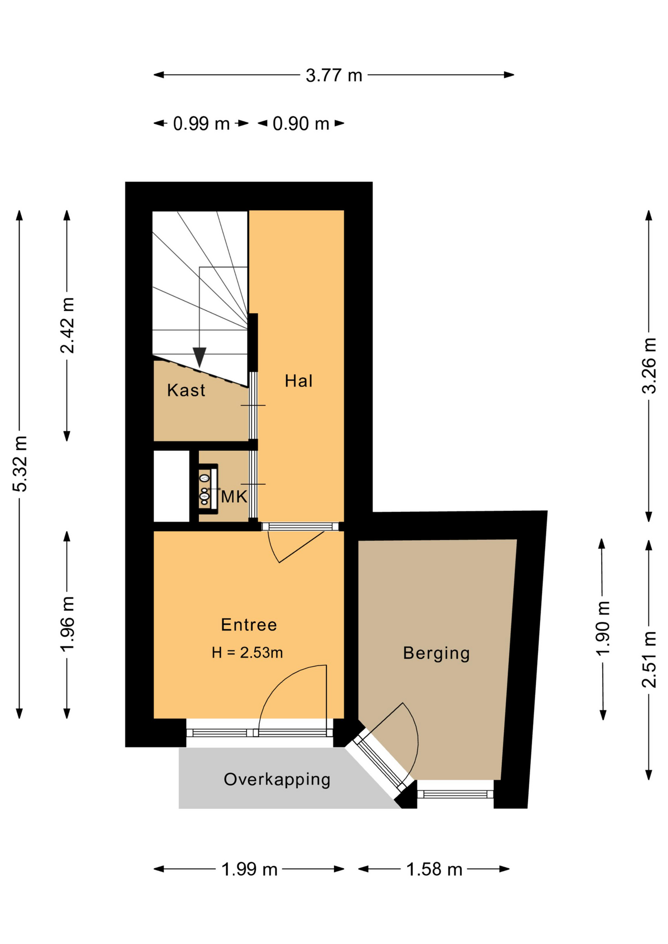 Vanaf de begane grond heeft u toegang tot de berging (ca. 4 m²).