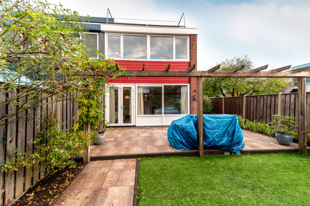 Via de woonkamer bereikt u de achtertuin van circa 9 bij 8 meter, eveneens gelegen op het zuiden. Hier kunt u optimaal profiteren van de zonuren en heerlijk ontspannen in uw eigen buitenruimte.