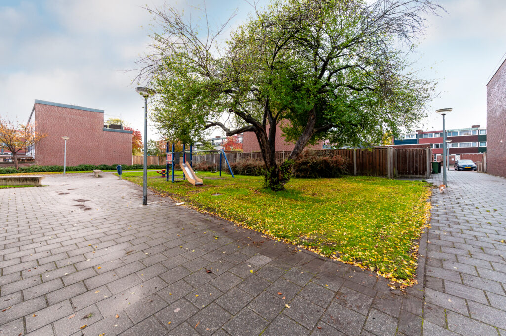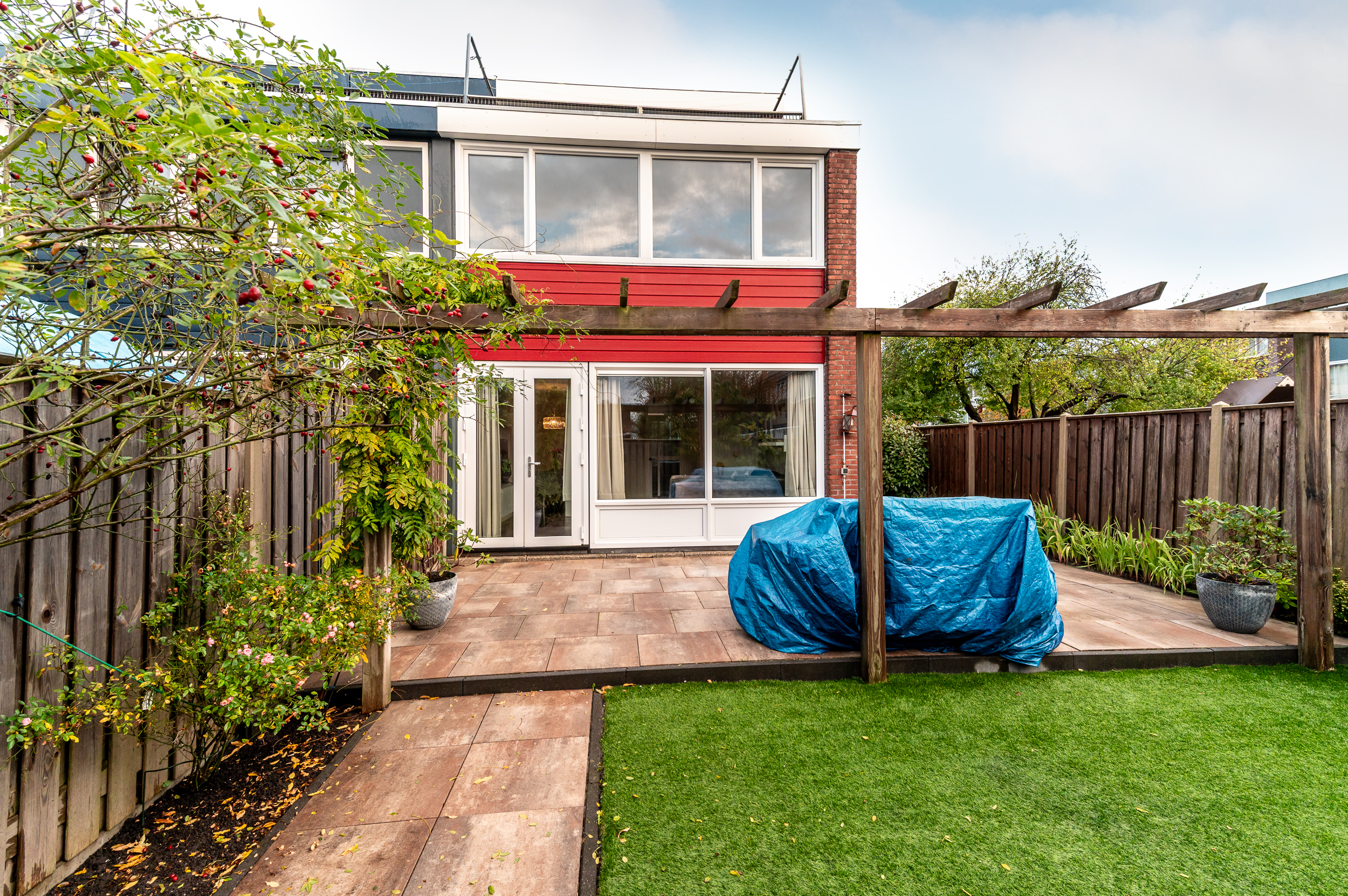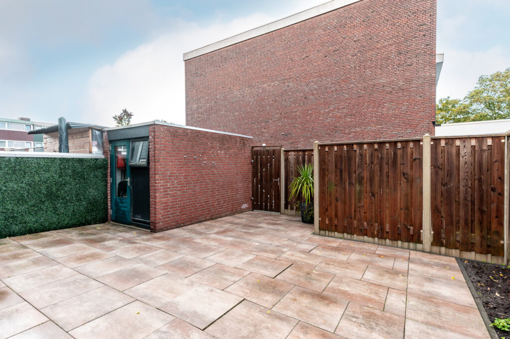 De woning beschikt over een voor-, zij- en achtertuin door de hoekligging. De voortuin ligt op het noorden, de achtertuin (9x8 meter) ligt op het zonnige zuiden. De tuin is deels betegeld en deels voorzien van kunstgras. Voor op het perceel treft u aan de vrijstaande stenen berging (ca. 7 m²).