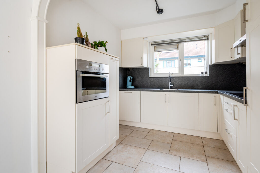 Bij binnenkomst valt direct de ruime en lichte woonkamer op. Dankzij de grote raampartijen geniet u hier van een prettige lichtinval en een fijne sfeer. De moderne halfopen keuken sluit mooi aan op de woonkamer en vormt een functioneel geheel met de living. De keuken is uitgevoerd met diverse inbouwapparatuur en een stijlvol granieten werkblad, wat het een ideale plek maakt voor de kookliefhebber.