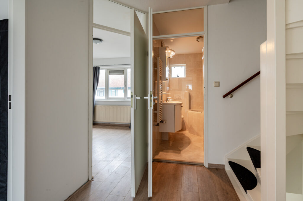 Op de eerste verdieping bevinden zich drie goed bemeten slaapkamers die uitstekend dienst kunnen doen als slaap-, werk- of hobbykamer. De tweede verdieping biedt nog een verrassend ruime vierde slaapkamer, mede dankzij de aanwezige dakkapel die zorgt voor extra ruimte en licht. De badkamer is compleet uitgevoerd en voorzien van een wastafelmeubel, douche, ligbad, toilet en natuurlijke ventilatie.