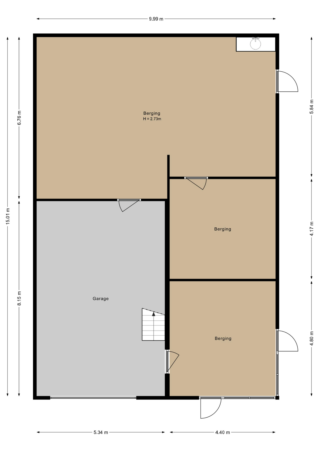 * De bedrijfsruimte is voorzien van een overheaddeur (4,0 x 3,5 m.) en heeft een vrije hoogte van 5,0 m.