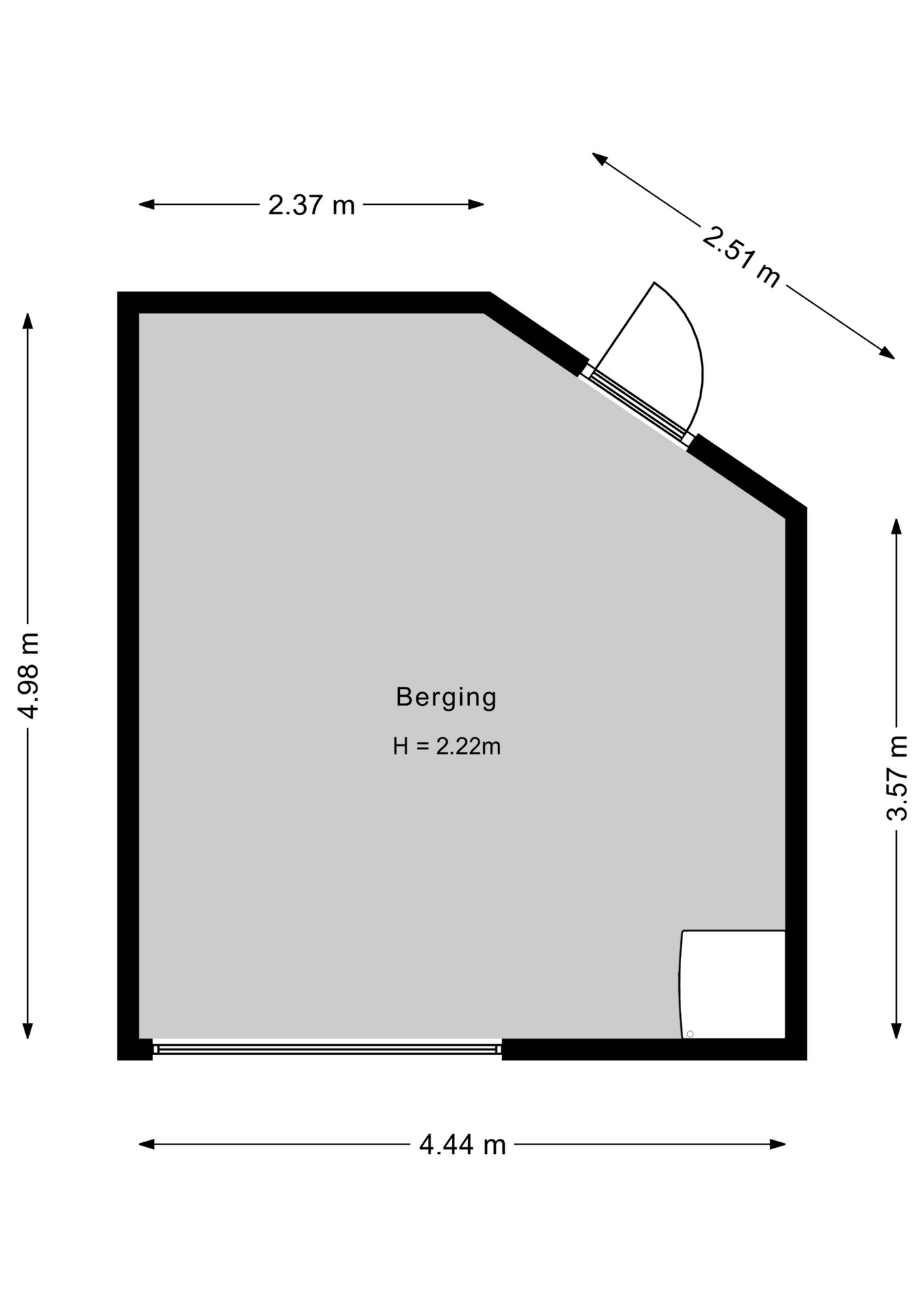 * Riante vergrootte garage aanwezig van ca. 22 m2 (4.98 m x 4.44 m) met een elektrische deur