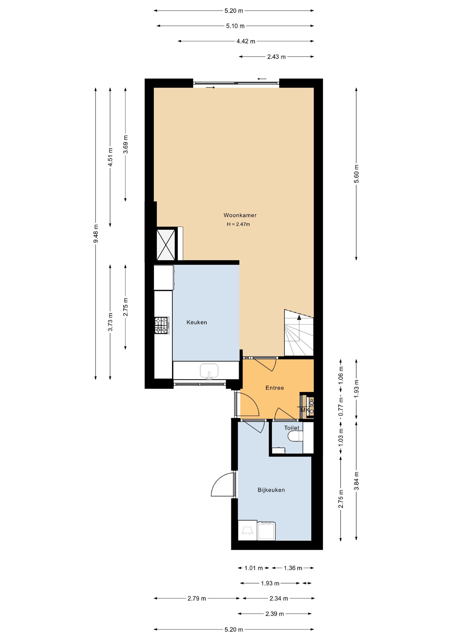 * De voormalige berging aan de voorzijde van de woning is omgebouwd en na-geïsoleerd tot een praktische bijkeuken (2023)