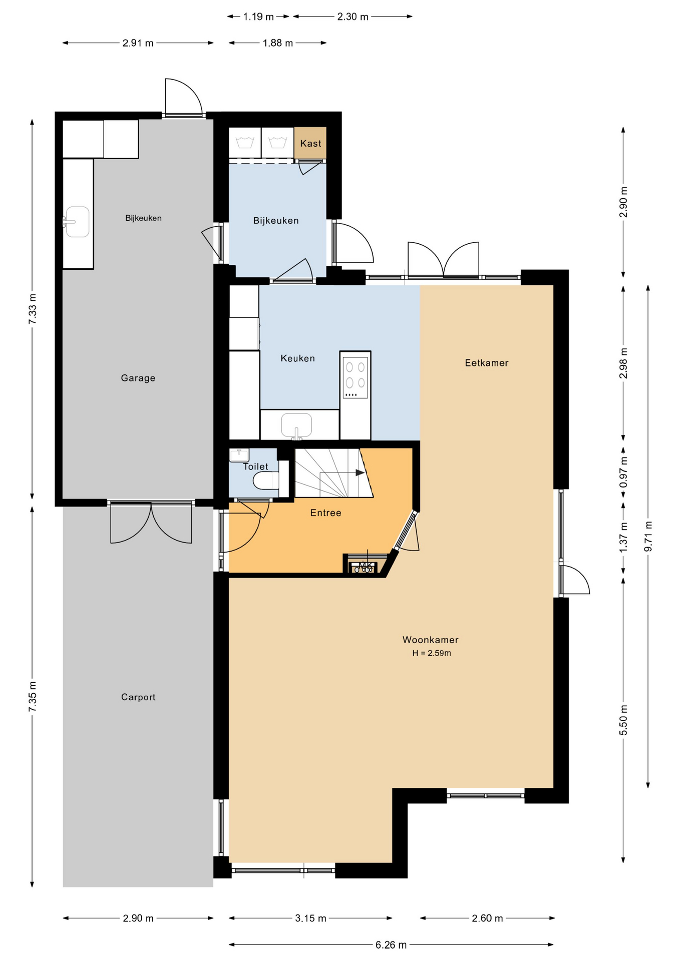 * Het oplaadpunt voor de elektrische auto onder de carport kan worden overgenomen