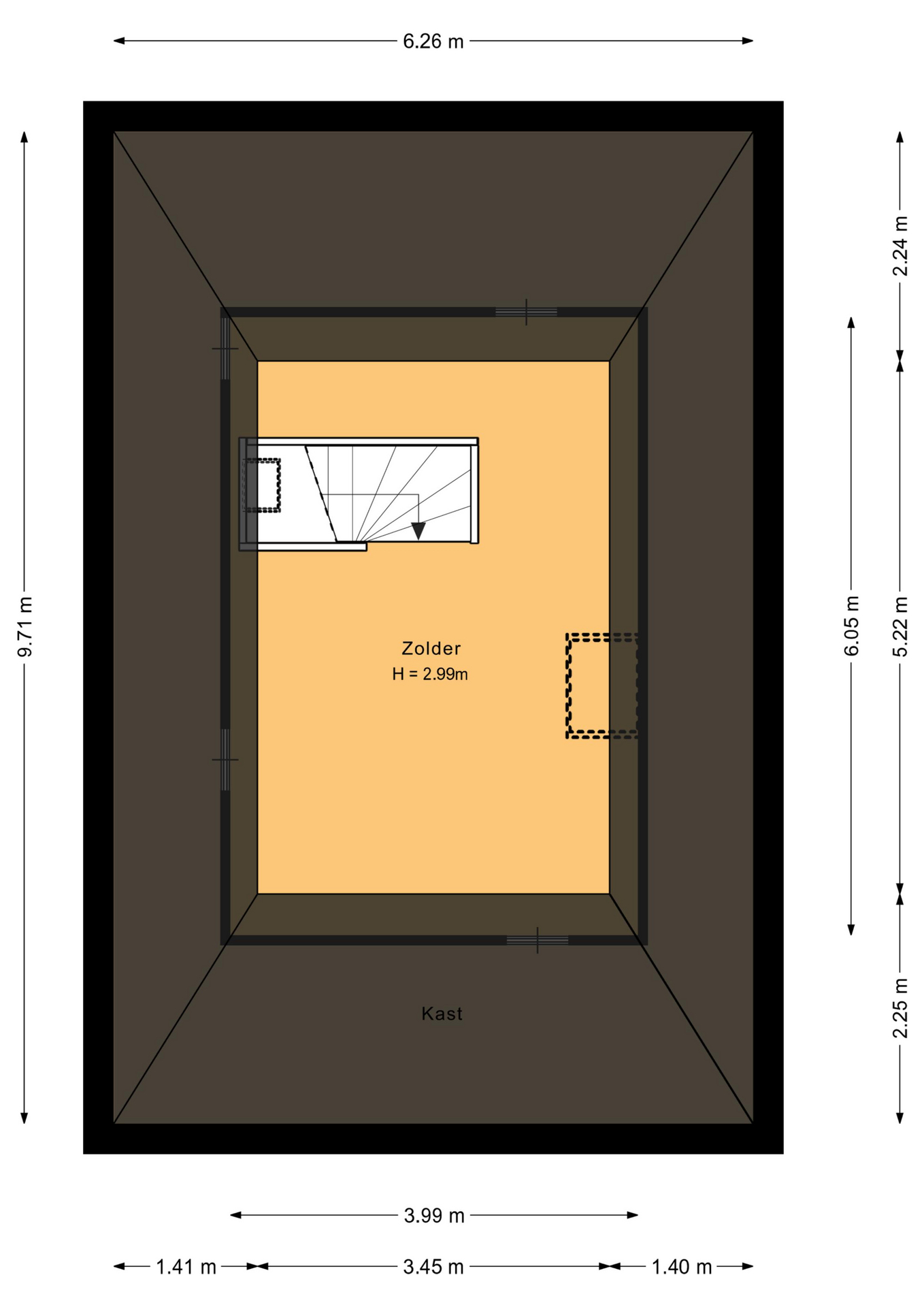 Ruime zolderverdieping (ca. 18 m2), momenteel in gebruik als 4e slaapkamer en voorzien van 2 dakramen, veel praktische bergruimte en de WTW-installatie. De verdieping is voorzien van een fraaie laminaatvloer (2014).