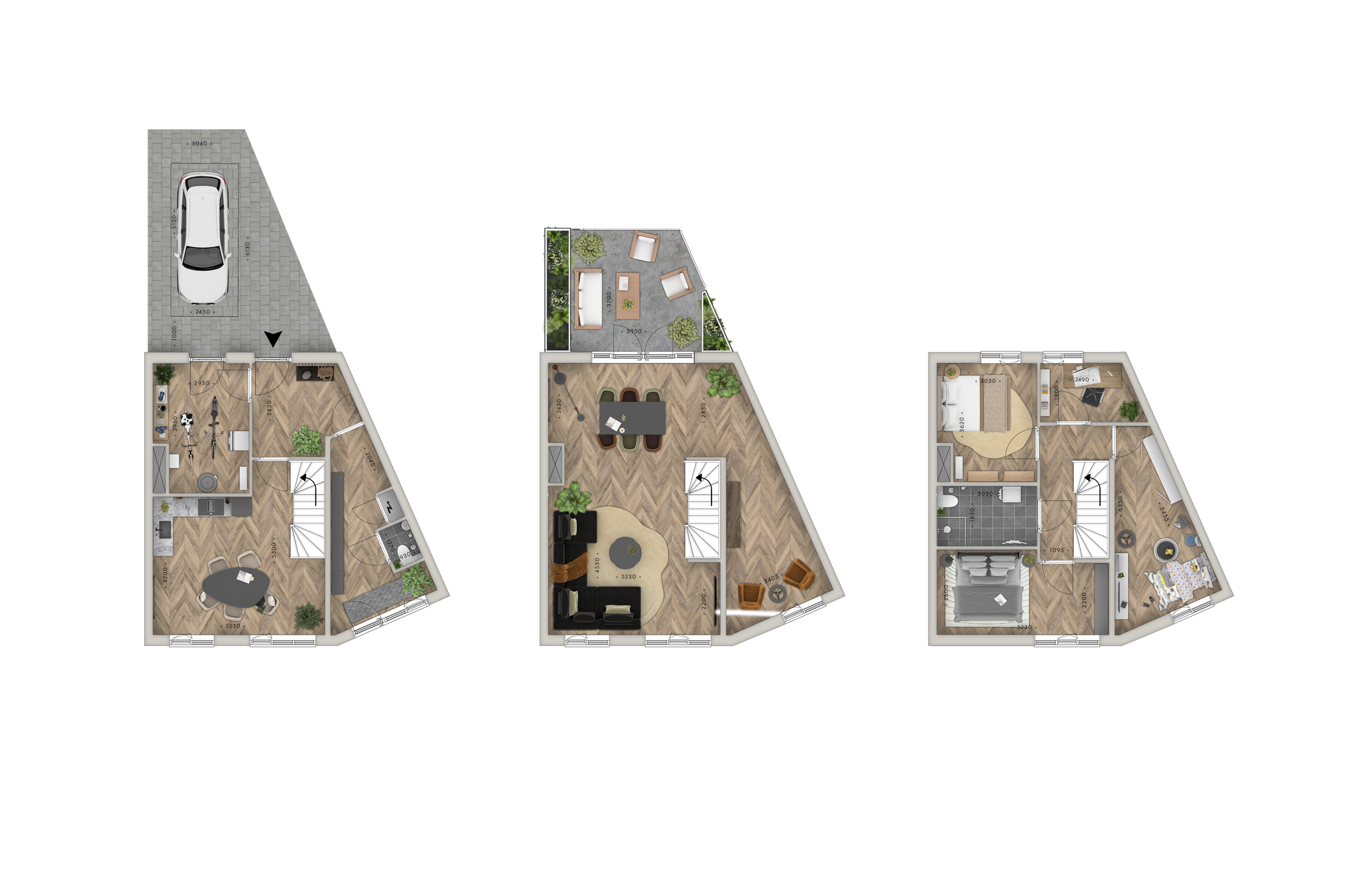 - Woonoppervlakte 129 m2, 3 slaapkamers, prijsrange € 403.500 - € 412.000