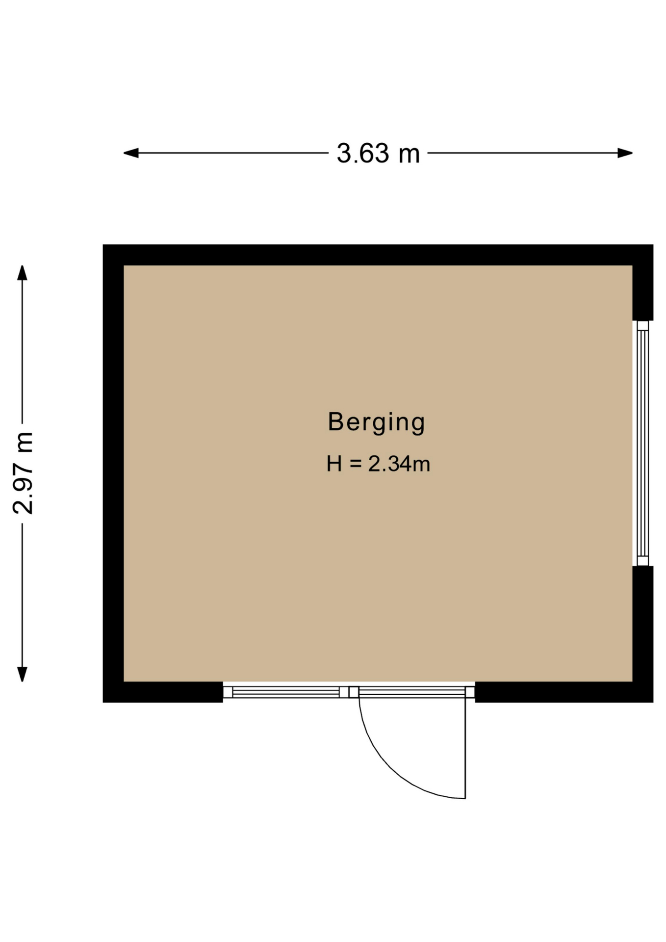 * Voormalige garage omgebouwd tot geïsoleerde kantoorruimte met berging;