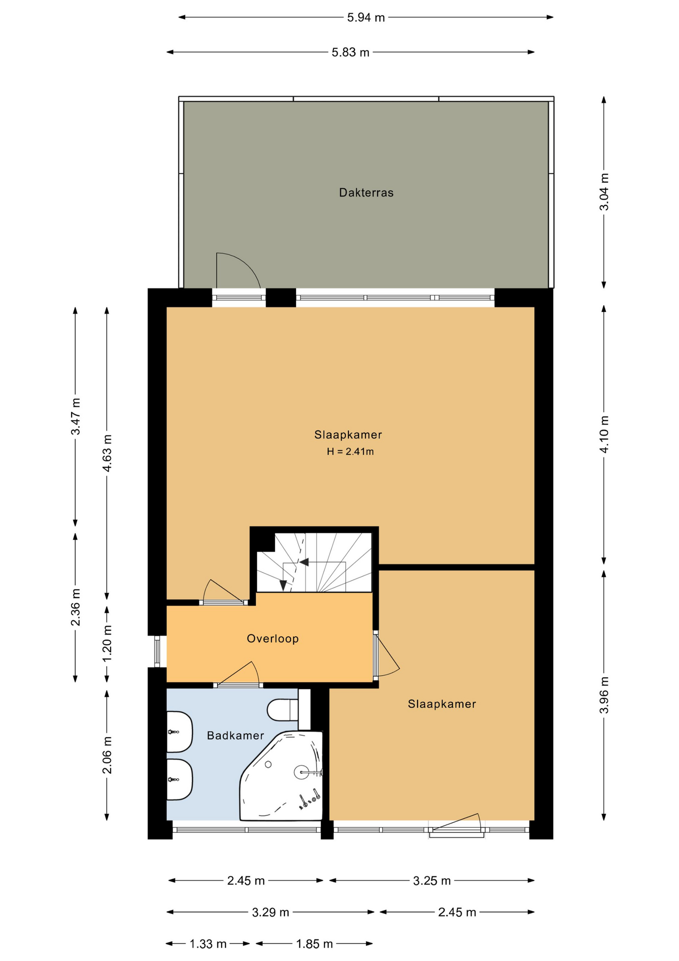 Lichte overloop met toegang tot twee ruime slaapkamers (ca. 24 / 11 m²), waaronder één royale slaapkamer over de volledige breedte van de woning en met een deur naar het zonnige dakterras gelegen op het westen. De slaapkamer aan de voorzijde beschikt over een charmant Frans balkon. De keurige en volledig betegelde badkamer is voorzien van inbouwspots en uitgevoerd met een hoekbad, dubbele wastafel, een tweede toilet, designradiator, mechanische ventilatie en een raam voor daglicht en natuurlijke ventilatie.