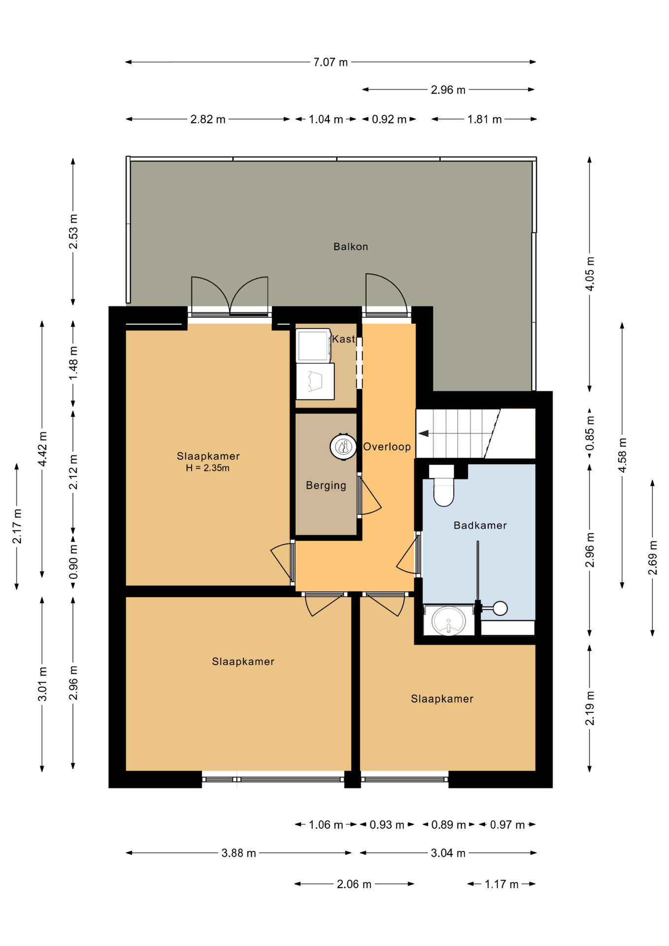 * De verdieping is grotendeels met ca. 1,5 meter uitgebouwd in 2020, waardoor er extra woonruimte is gecreëerd
