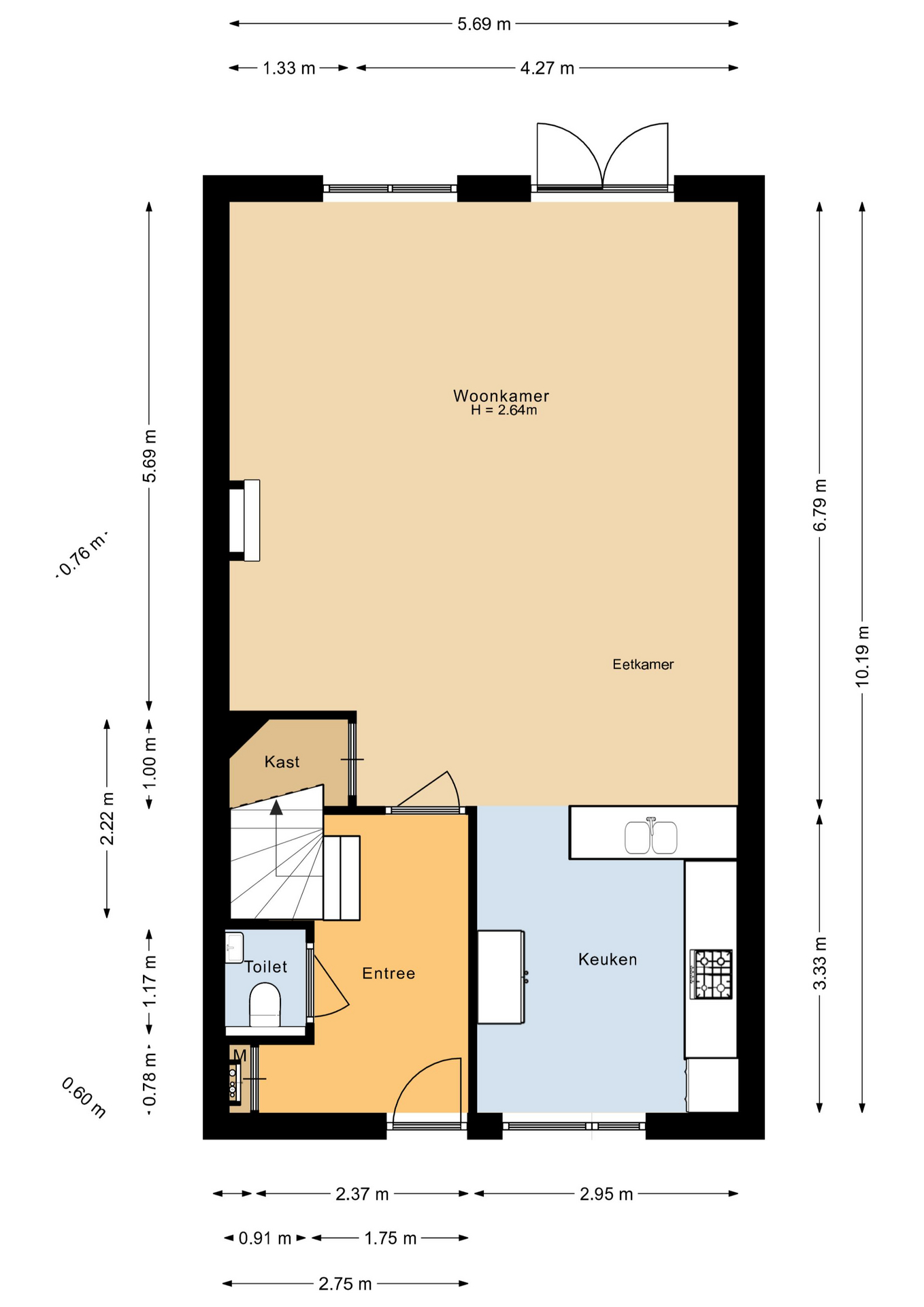 Entree/hal met de meterkast, toiletruimte, garderobe, trapopgang naar de verdieping en toegang tot de woonkamer. Ruime tuingerichte woonkamer van 5.69 m. breed met grote raampartijen (veel lichtinval!), een sfeervolle elektrische haard (Element 4 club 80 H / 2023), een trapkast en middels dubbele openslaande deuren toegang naar de tuin. Aan de voorzijde bevindt zich de moderne inbouwkeuken, welke voorzien is van de volgende apparatuur; vaatwasser (2018), oven, 4-pits gaskookplaat en een afzuigkap. Ruime opstelmogelijkheden voor een grote eettafel waar u heerlijk met uw familie kunt dineren. De begane grond is voorzien van een laminaatvloer.