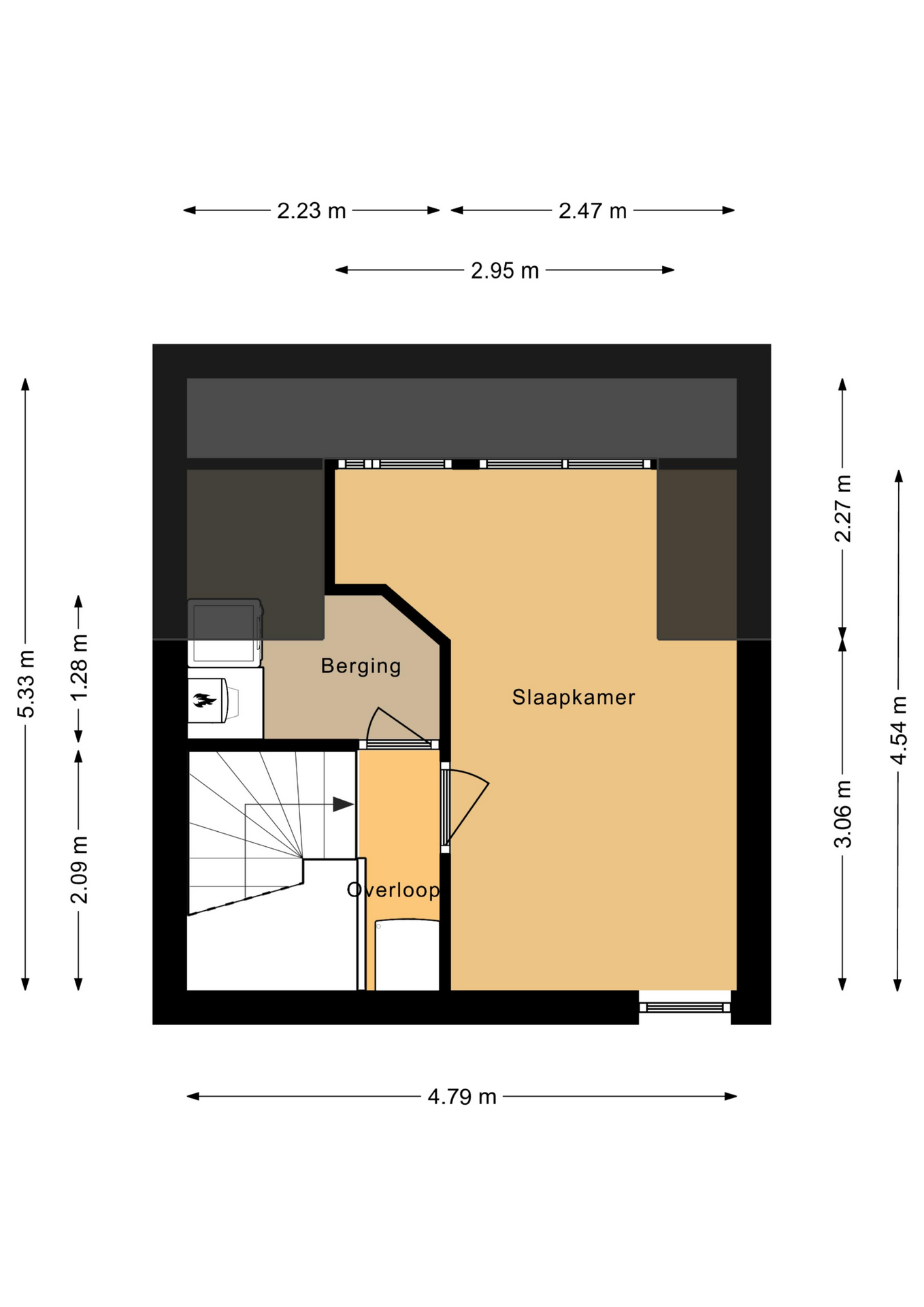 Overloop, slaapkamer 3 (ca. 11 m²) voorzien van dakkapel, aparte bergruimte met opstelling CV-ketel en wassen-/drogen.