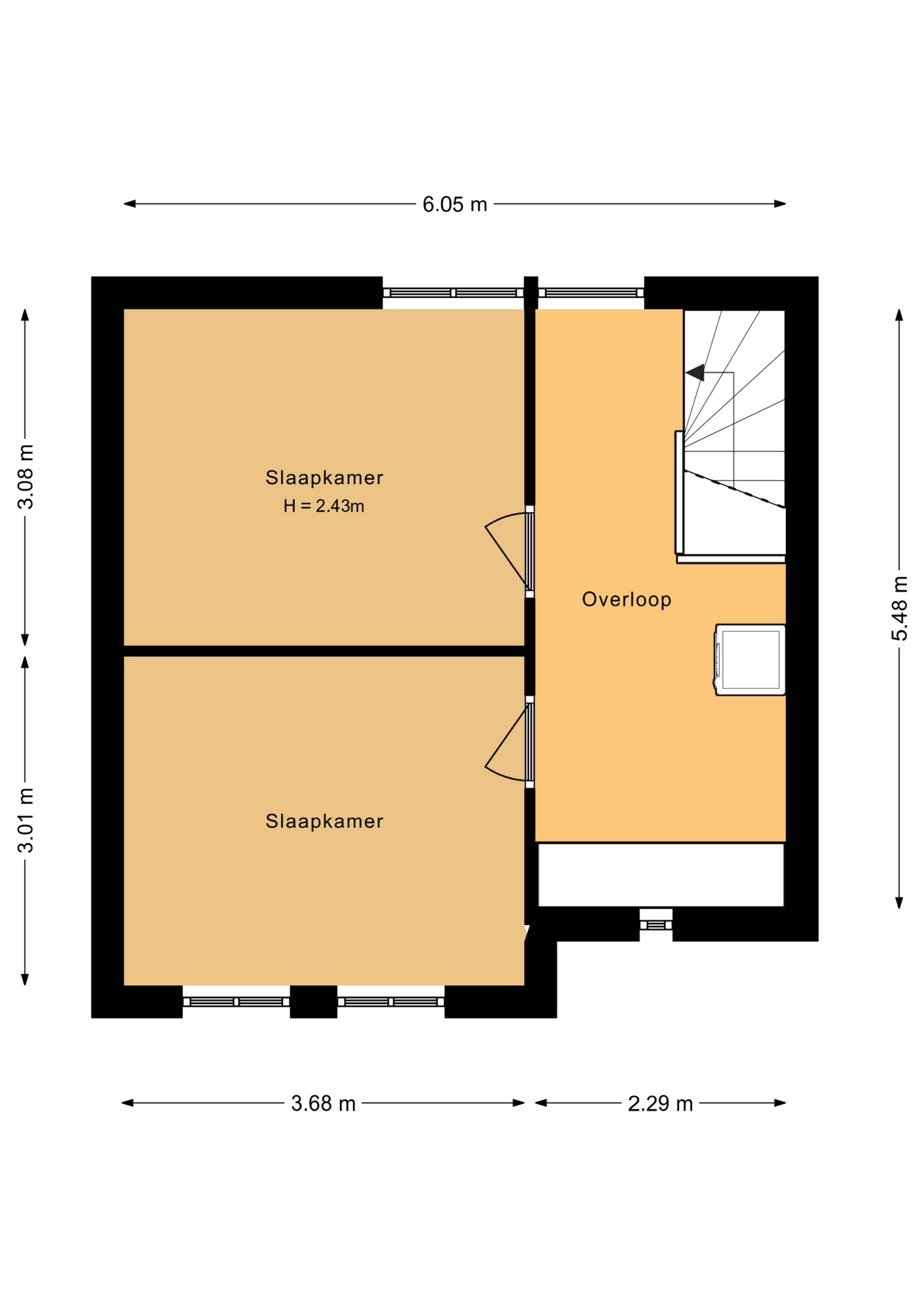 De tweede verdieping is voorzien van een Marmoleumvloer.