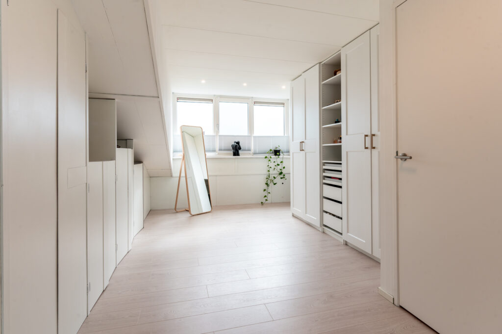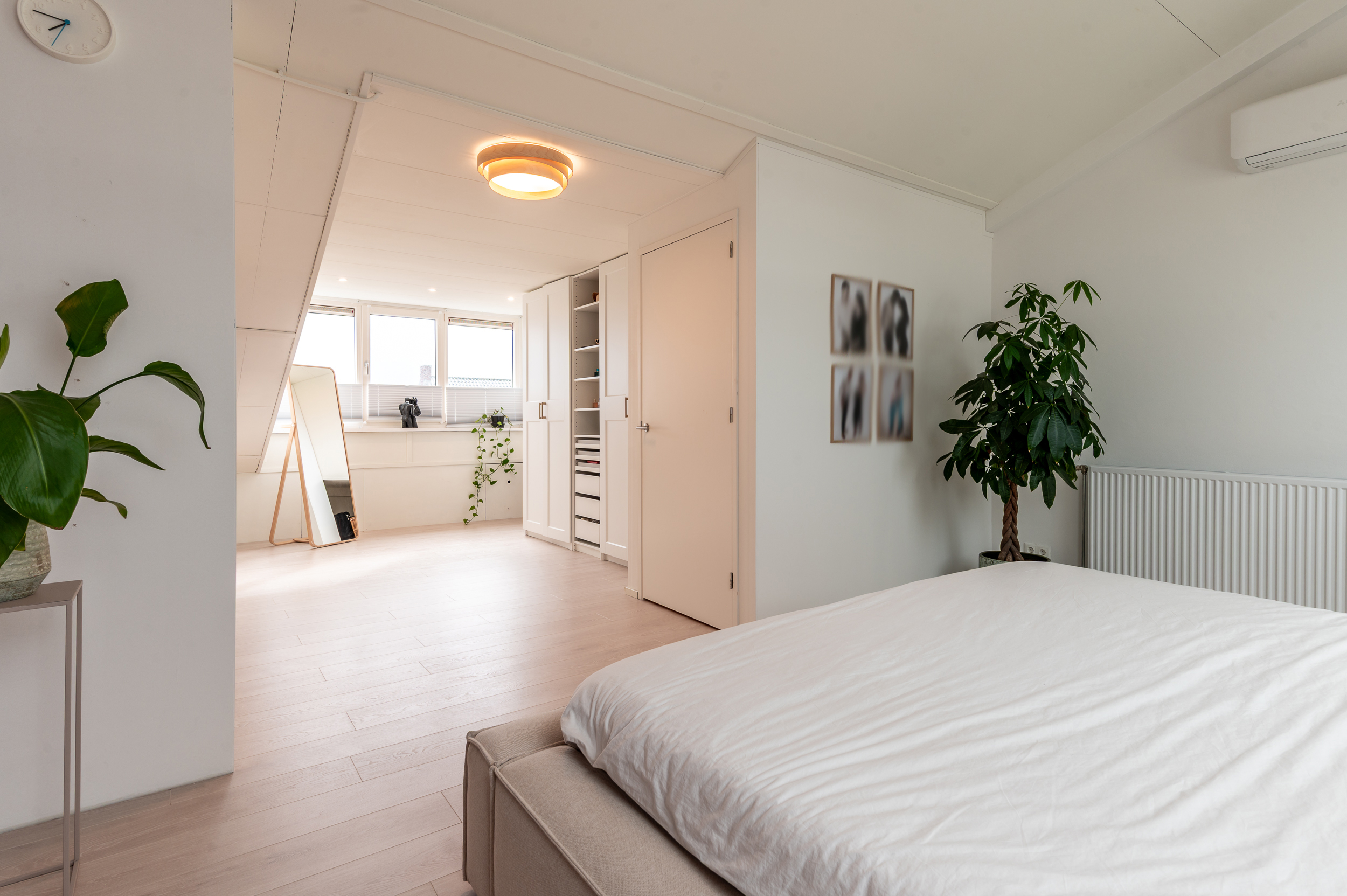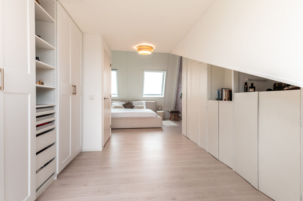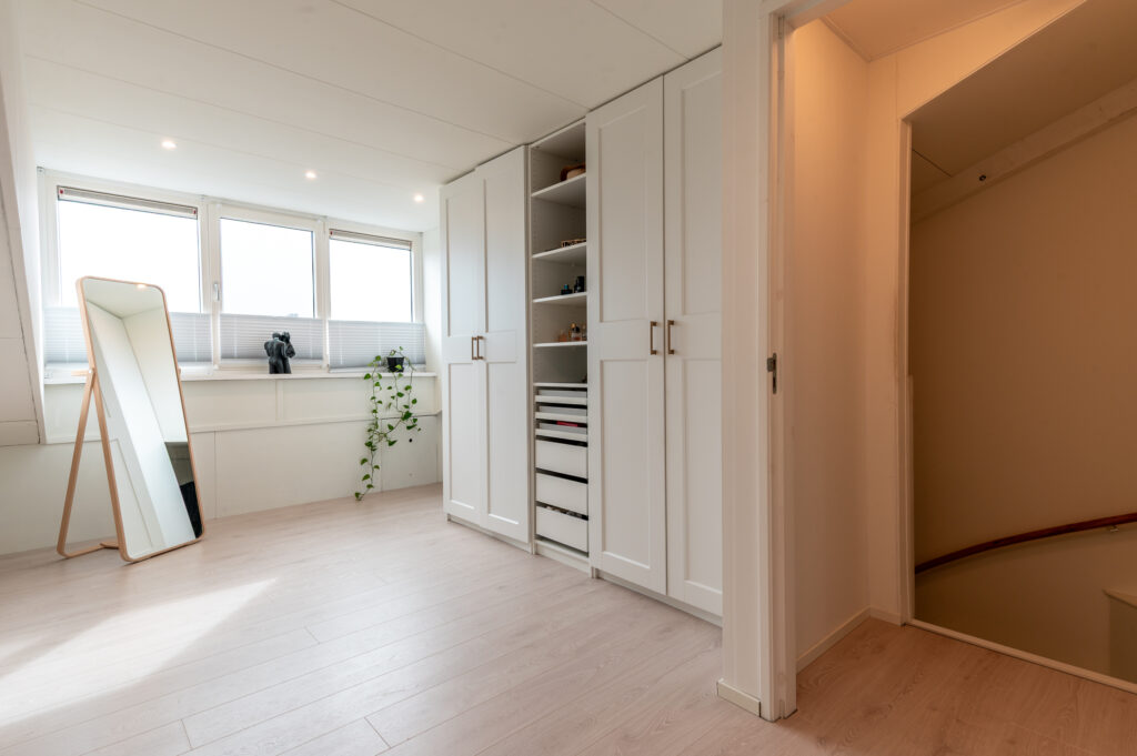 Verrassend ruime verdieping met een dakkapel, 2 dakramen, de opstelplaats van de wasmachine/droger en veel praktische bergruimte. Deze verdieping is momenteel in gebruik als masterbedroom met ingebouwde kastenwanden, maar kan eenvoudig worden aangepast naar 2 ruime slaapkamers, waardoor deze de flexibiliteit biedt voor gezinnen met groeiende behoeften én voor andere levensstijlen. De verdieping is voorzien van strakke wandafwerking en een mooie laminaatvloer.
