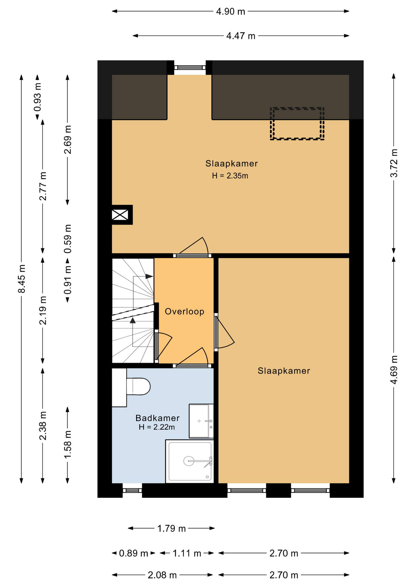 Overloop met toegang tot 2 ruime slaapkamers (ca. 15 en 13 m2, waarbij de ouderslaapkamer is voorzien van een airco (warmte/koelen 2023) en profiteert van een dakkapel (gerenoveerd in 2023). Moderne badkamer (2023) met een (inloop)douche, 2e toilet, wastafelmeubel, vloerverwarming en een raam voor de natuurlijke ventilatie. De verdieping is voorzien van een fraaie laminaatvloer (2023).