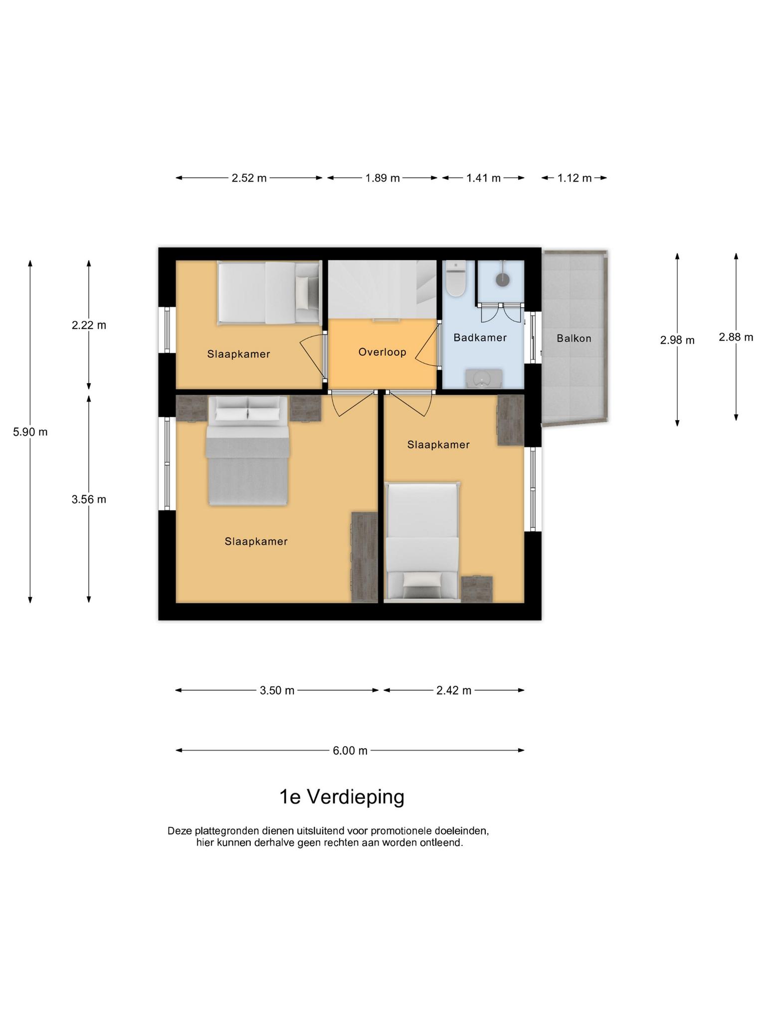 Overloop met toegang tot 3 in grote variërende slaapkamers (ca. 12 / 9 / 6 m2), allen voorzien van een fraaie laminaatvloer en rolluiken aan de buitenzijde. Keurige badkamer met een douche, wastafelmeubel, 2e hangcloset, een designradiator en deur met toegang naar het balkon (3 m2).