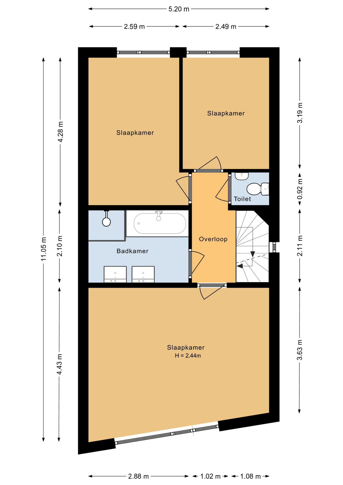 Op de eerste verdieping bevinden zich 3 goed bemeten slaapkamers, op de tweede verdieping treft u de vierde slaapkamer aan. De kamers zijn stuk voor stuk licht en ruim en bieden tal van mogelijkheden voor inrichting als slaapkamers, thuiswerkplekken of hobbyruimtes. Ook de badkamer is ruim opgezet en voorzien van alle gemakken. Met een dubbele wastafel, een ligbad en een aparte douche biedt deze ruimte alles wat u nodig heeft.