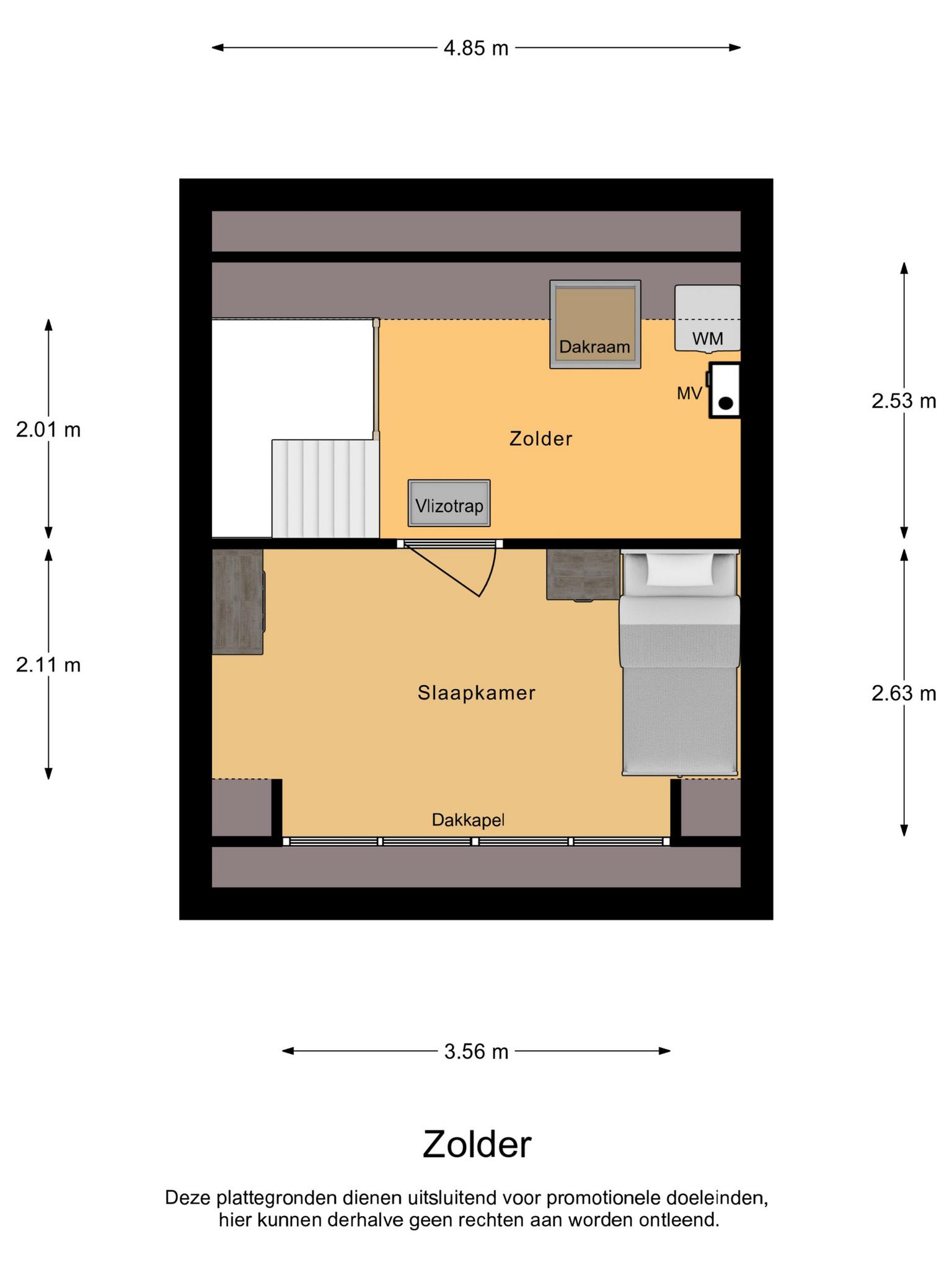 Overloop met opstelling wasmachine en mechanische ventilatie, dakraam en vlizotrap naar de vliering, slaapkamer 3 (ca. 10 m²) voorzien van dakkapel.