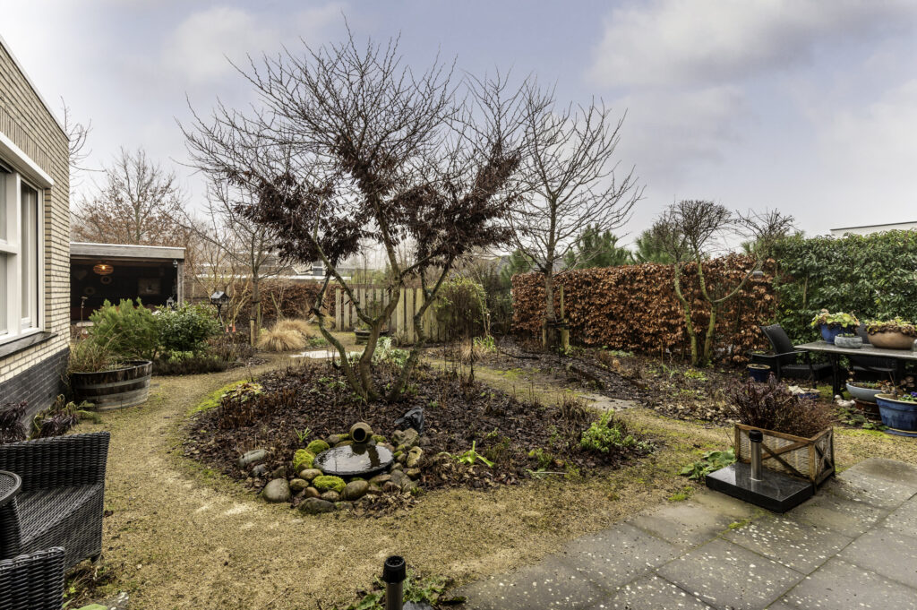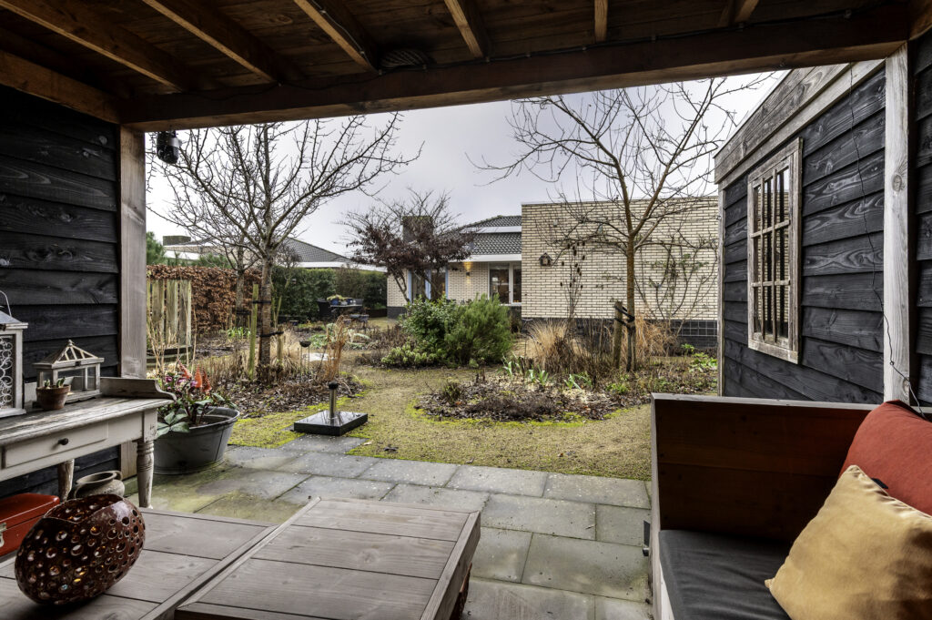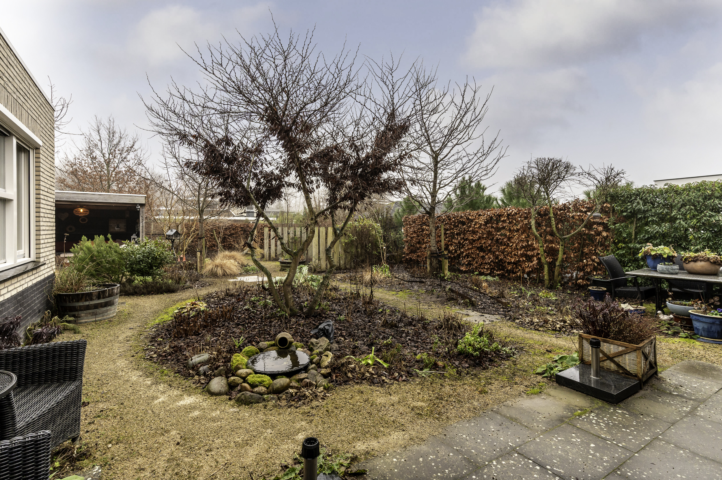 De onder architectuur aangelegde tuin is rondom de woning gelegen en heeft een totale tuinoppervlakte van circa 612 m². Achterop het perceel treft u aan een vrijstaande houten berging (ca. 21 m²) met overkapping. Parkeren doet u eenvoudig op eigen terrein met meerdere auto's.