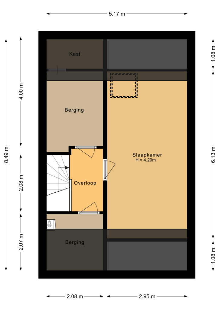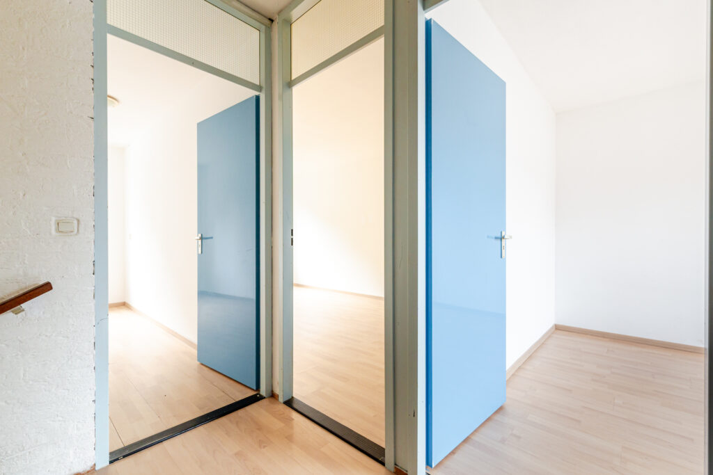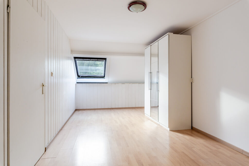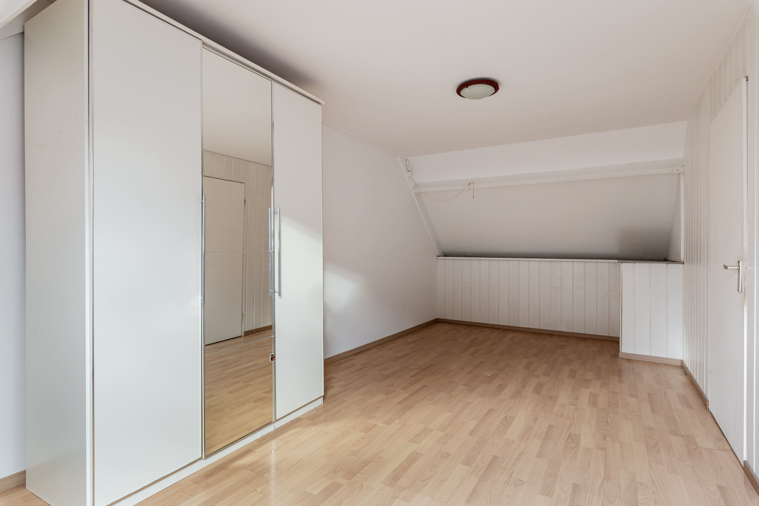 Overloop met de opstelplaats van de cv-ketel (2021) en een praktische bergruimte. Toegang tot de ruime 4e slaapkamer (ca. 18 m2) met een dakraam. De verdieping is voorzien van een laminaatvloer.