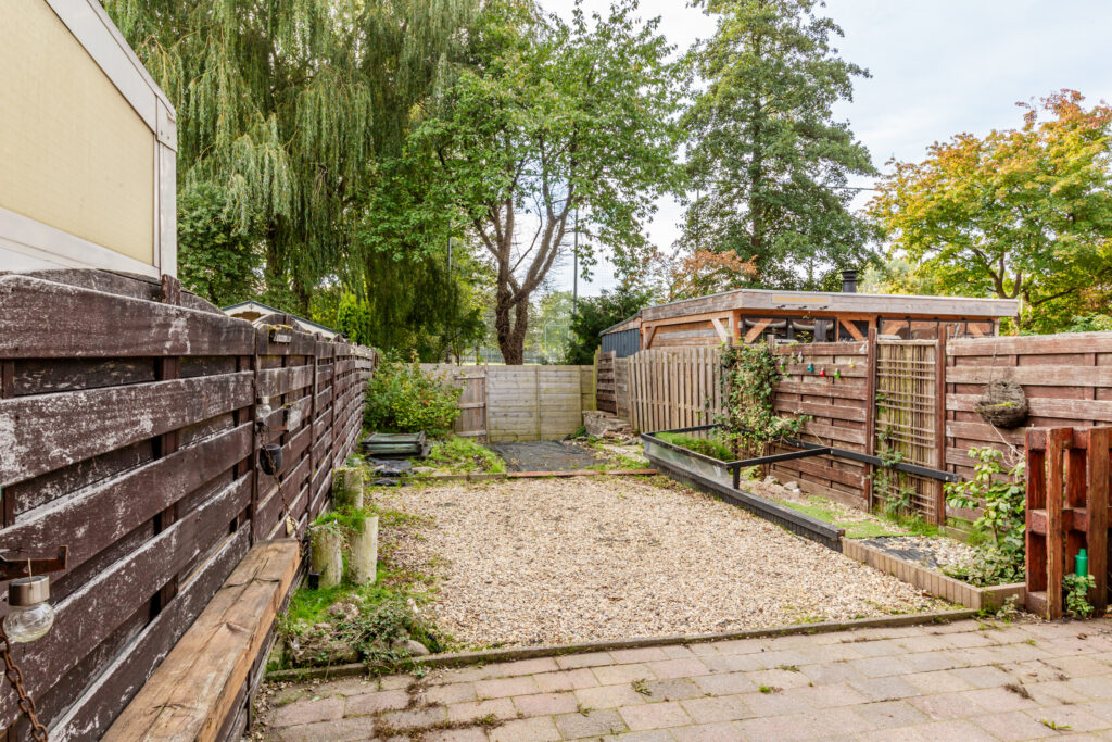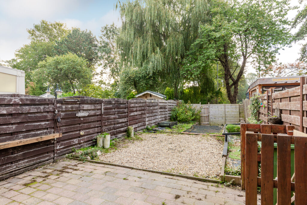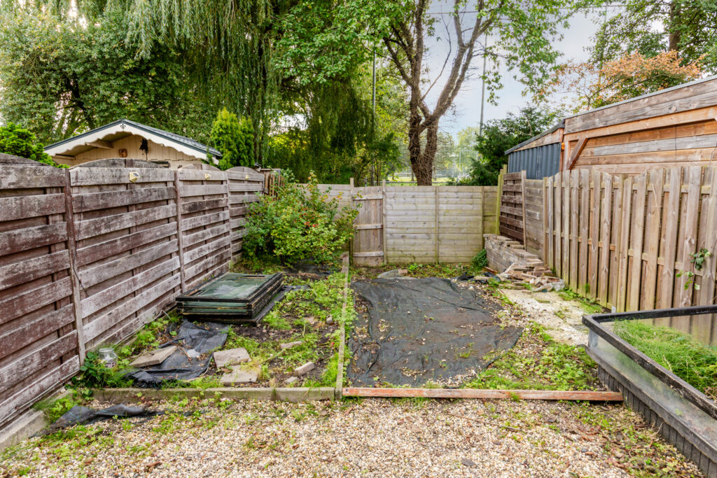 De vrij gelegen achtertuin is gelegen op het zuiden en voorzien van een terras met bestrating, siergrind, borders met beplanting, een gevelkraan, buitenzonwering en een praktische achterom. De tuin wordt omheind middels schuttingen en geeft veel privacy!