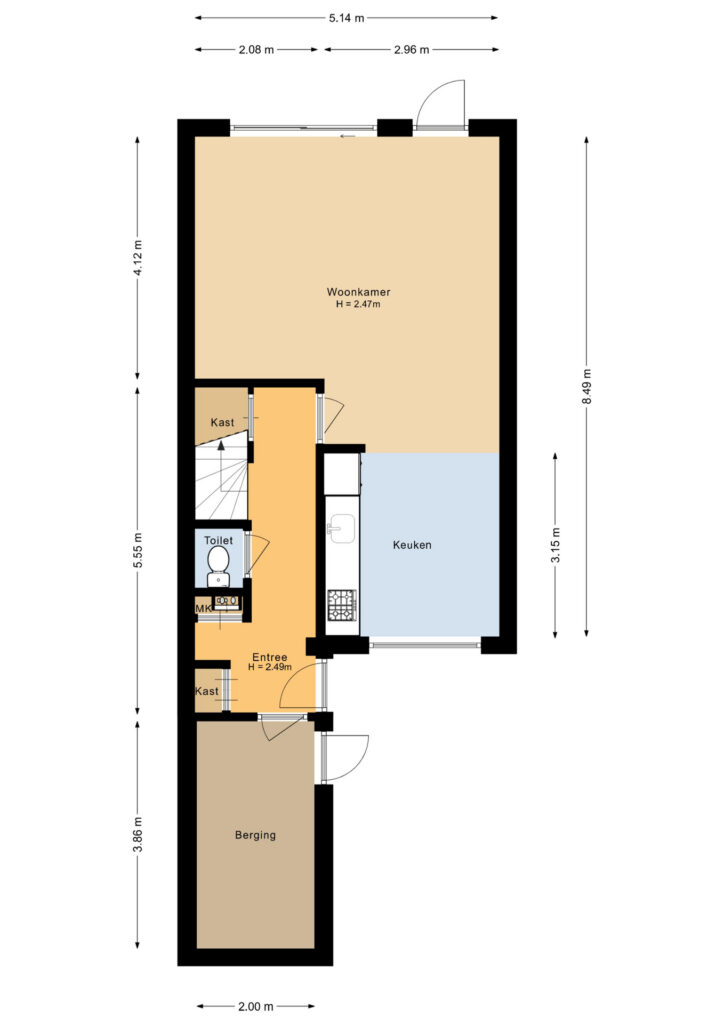 Entree/hal met de meterkast, toiletruimte, garderobe, trapopgang naar de verdieping, bergkast en toegang tot de woonkamer en de aangebouwde stenen berging met de wasmachineaansluiting en een deur naar de voortuin. Een heerlijke tuingerichte woonkamer van 5,14 met breed met grote raampartijen (veel lichtinval) en middels een schuifpui toegang naar de vrij gelegen achtertuin. Aan de voorzijde bevindt zich de nette inbouwkeuken (2019), welke voorzien is van de volgende apparatuur; koelkast, combi-oven, vaatwasser, 4-pits gaskookplaat en een afzuigkap. Ruime opstelmogelijkheden voor een grote eettafel, waar u heerlijk met vrienden en familie kunt dineren. De begane grond is grotendeels voorzien van een laminaatvloer en de hal, toiletruimte en de berging zijn voorzien van plavuizen.