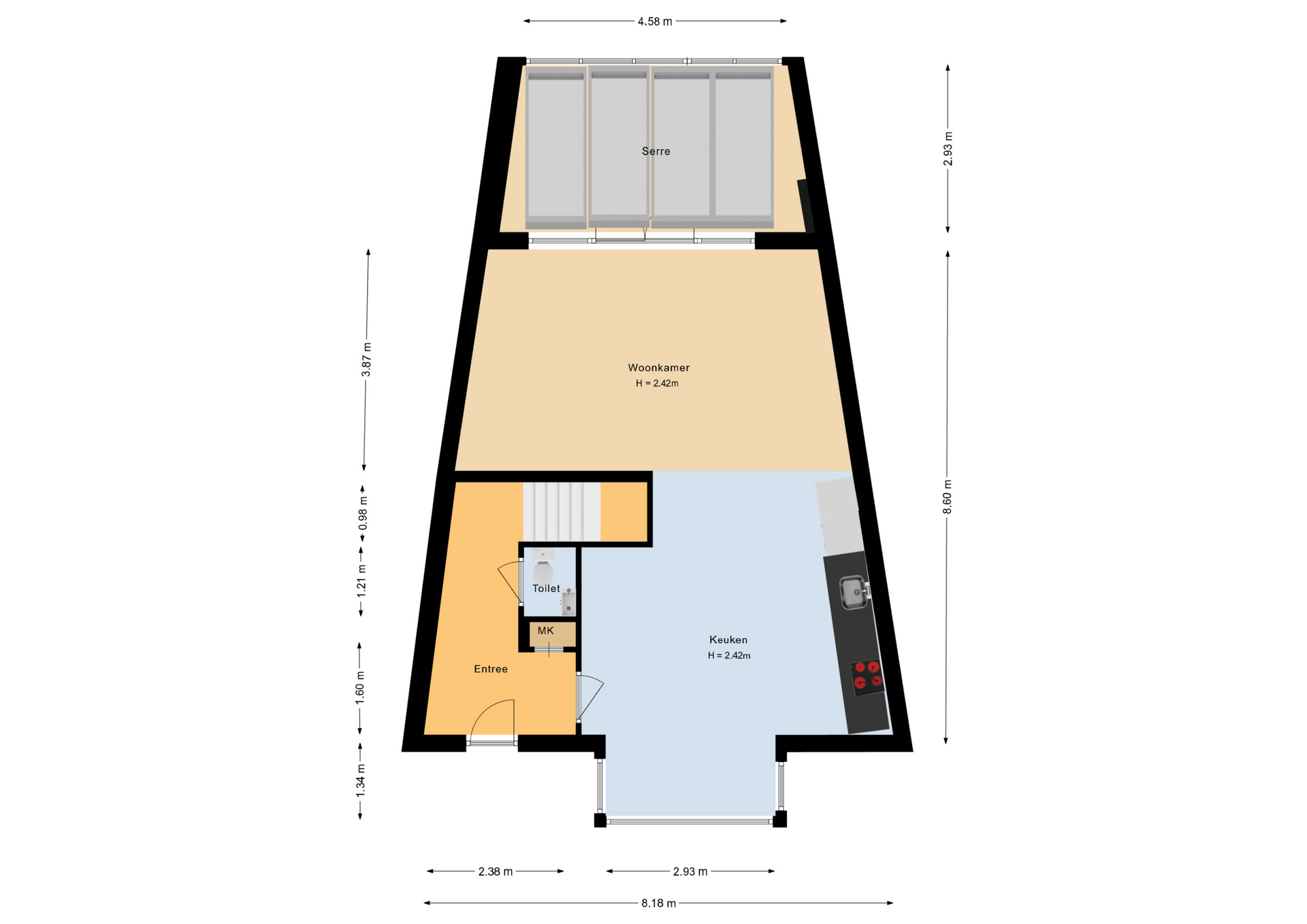 Entree/hal met de meterkast, toiletruimte (gemoderniseerd in 2022), trapopgang naar de verdieping en toegang tot de keuken. De fraaie inbouwkeuken is geplaatst rondom 2010 en is voorzien is van de volgende apparatuur; koelkast, vriezer, vaatwasser, combi-oven, combimagnetron, Quooker (2017), een 4-pits inductiekookplaat (2024) en een afzuigkap. Ruime opstelmogelijkheden voor een grote eettafel waar u heerlijk met uw familie kunt dineren. Vanuit de keuken kijkt u heerlijk vrij weg over een groen plantsoen en speelvoorzieningen! Doorloop naar de ruime tuingerichte woonkamer met grote raampartijen, trapkast, een fraaie PVC-vloer (2017) en dubbele openslaande deuren met toegang naar de serre. De serre is geplaatst in 2010, de schuifdeuren in 2017 en in 2021 zijn de vloeren, wanden en dakplaten vervangen. Er hangt een fijne terrasheater waardoor het altijd warm is. Hierdoor kunt u er in elk seizoen comfortabel verblijven.