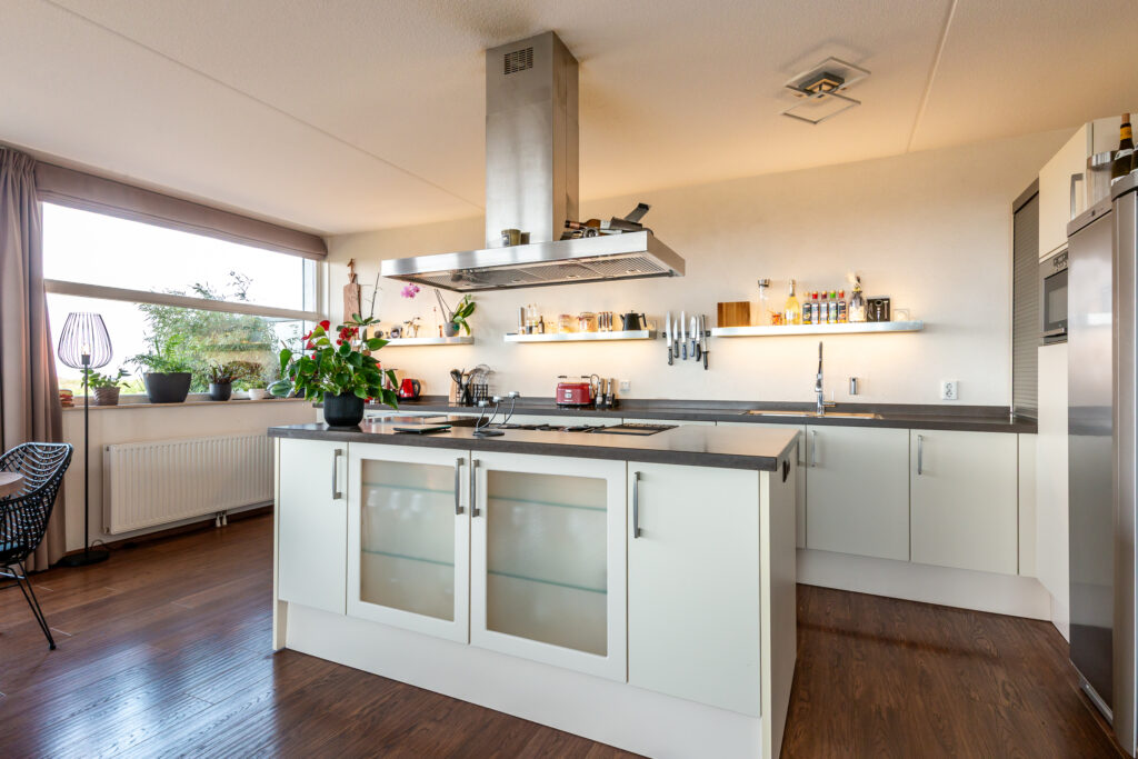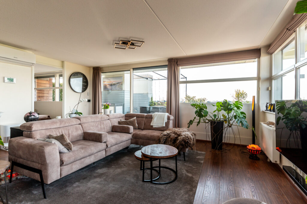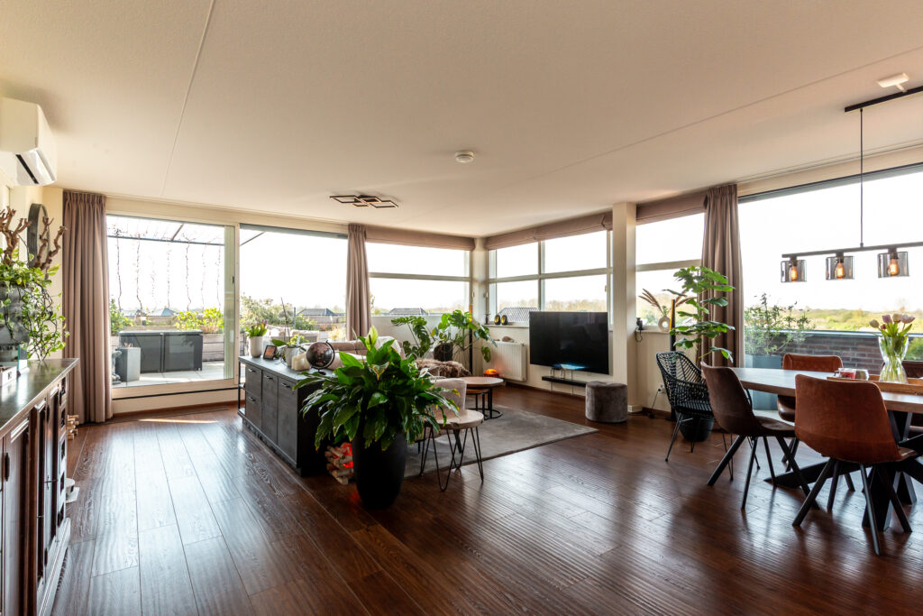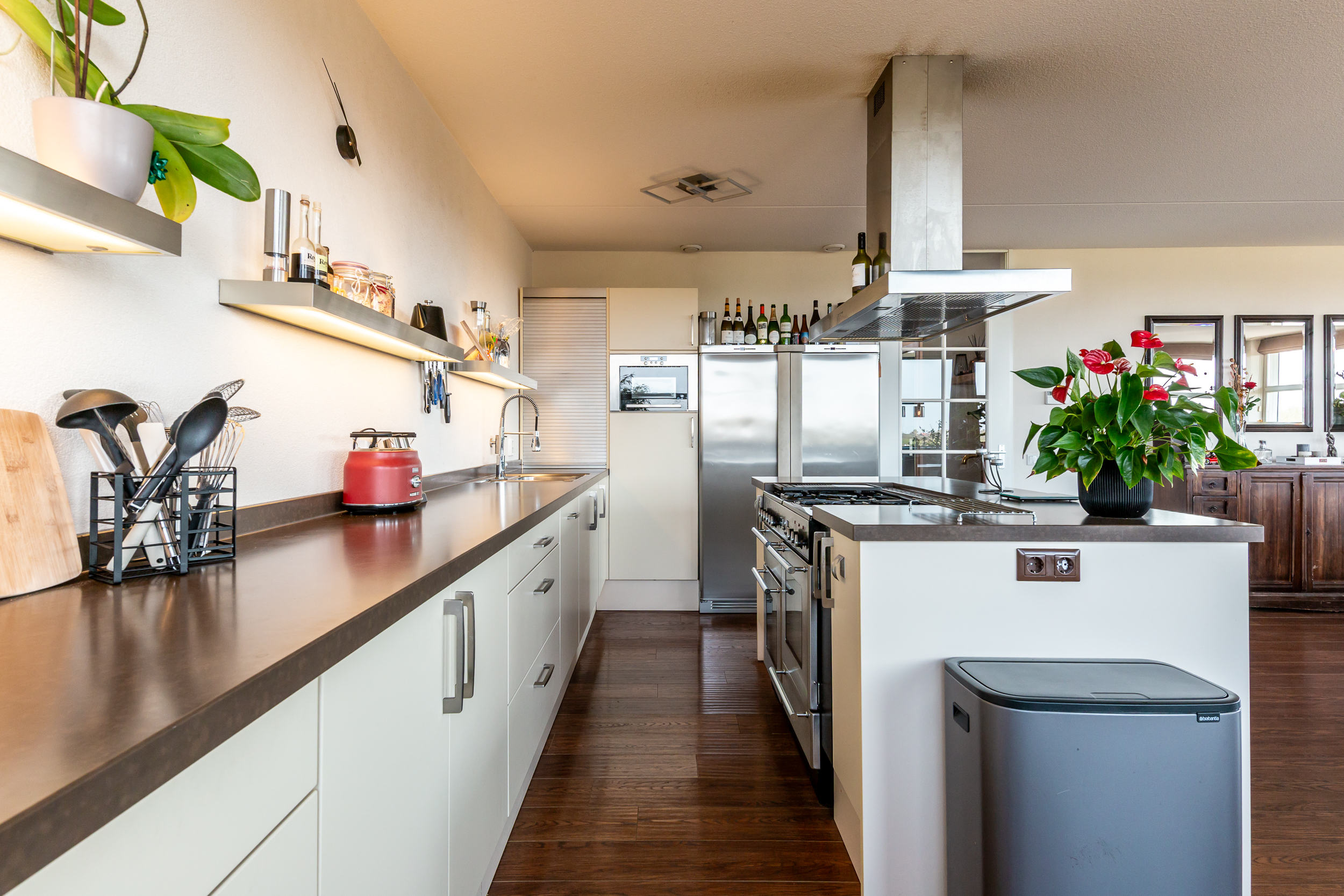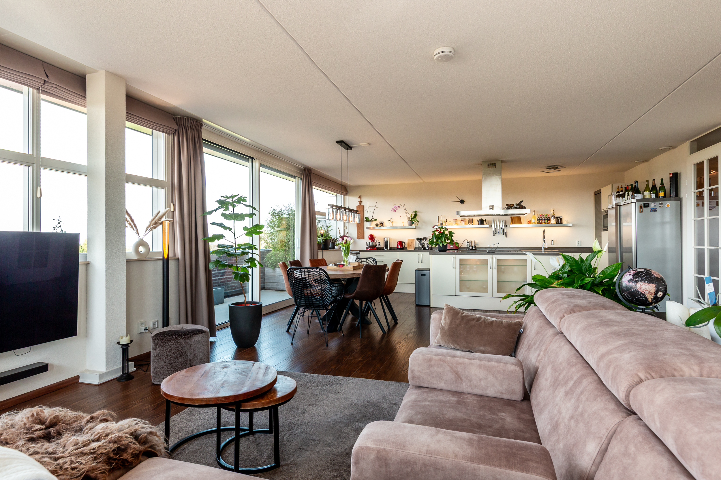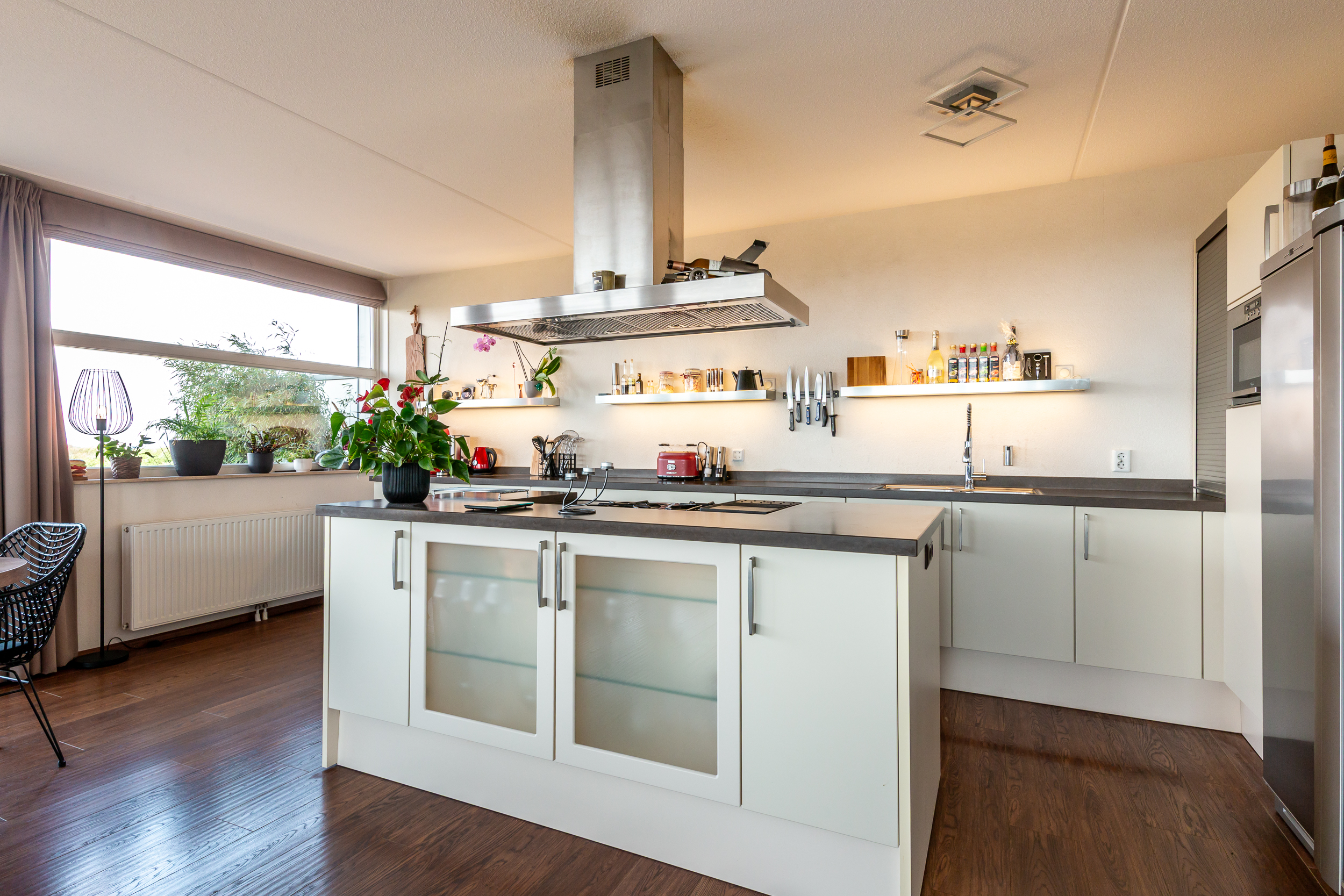 Binnen treft u een lichte en royale woonkamer met grote raampartijen die het buitengevoel naar binnen halen. De open keuken met kookeiland vormt het hart van de woning en is perfect voor gezellige avonden en culinaire momenten. Het penthouse beschikt daarnaast over drie ruime slaapkamers, een aparte kantoorruimte, een moderne badkamer en een eigen parkeerplaats. Met energielabel A is het appartement bovendien energiezuinig en klaar voor de toekomst. Het geheel is keurig onderhouden en modern ingericht, waardoor u hier zonder zorgen kunt intrekken.