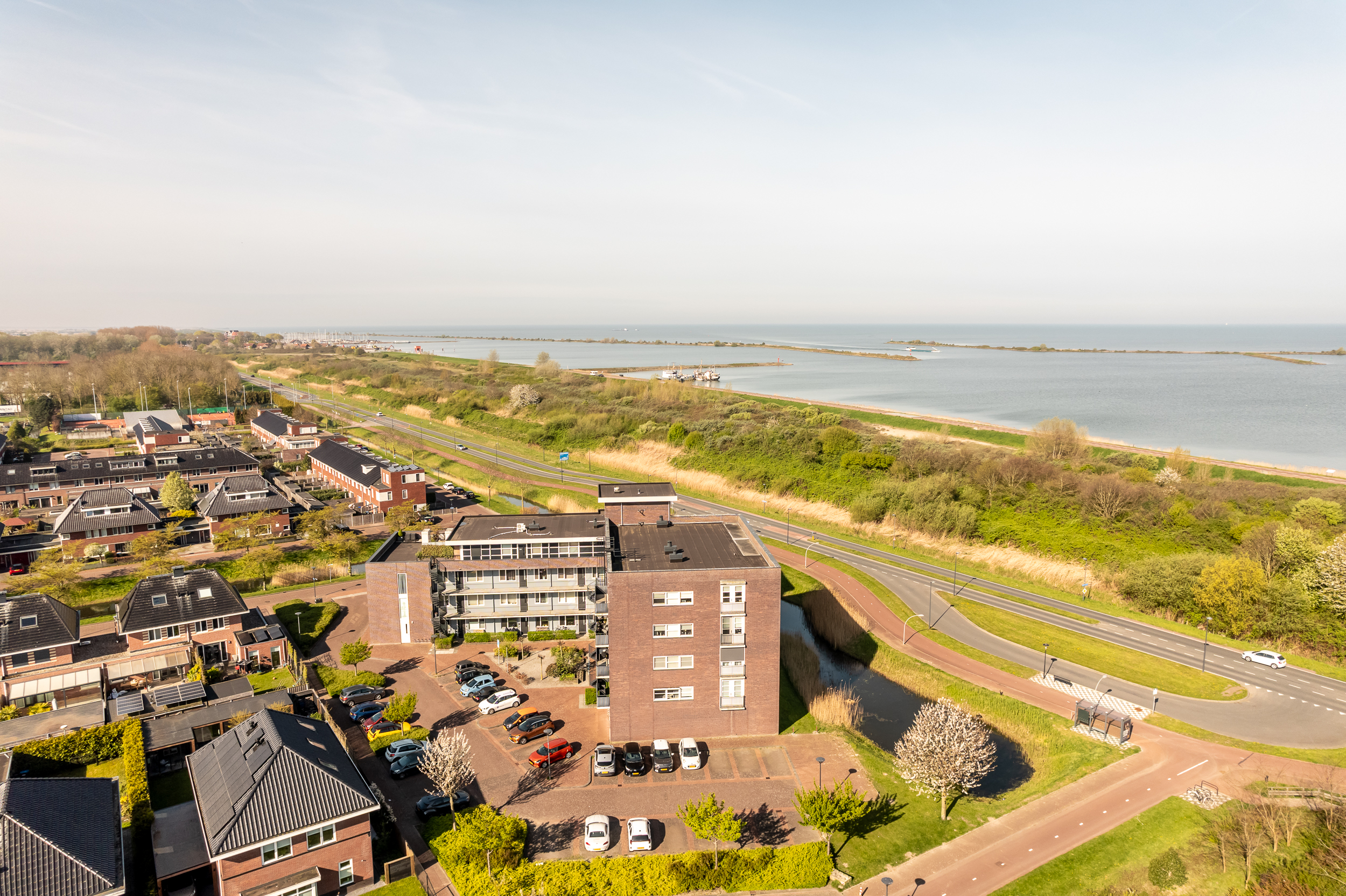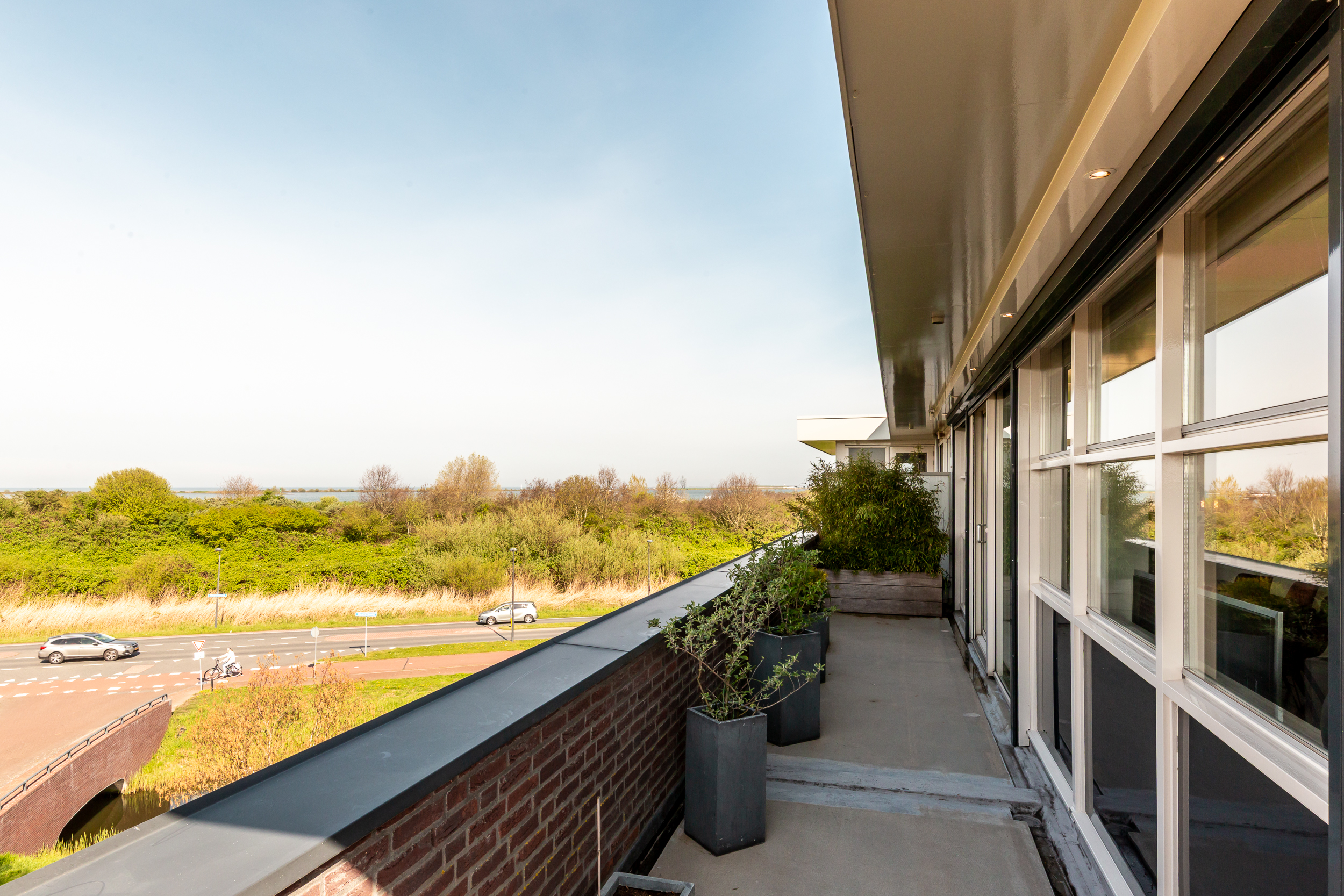 Op een werkelijk unieke locatie bevindt zich dit riante en modern afgewerkte penthouse met een woonoppervlakte van maar liefst ca. 144 m². Hier geniet u dagelijks van rust, ruimte en een panoramisch uitzicht over het water, een uitzicht dat nooit verveelt en elk moment van de dag een andere beleving biedt. Geniet van boten en (zeil)schepen die voorbijvaren en iedere dag van het jaar een zonsondergang waar men op menig exotische vakantiebestemming jaloers op zou zijn! Absolute eyecatcher is het royale dakterras van ca. 88 m² met een ligging op het zuiden! Dit is dé plek om te ontspannen, te dineren met vrienden of simpelweg te genieten van de zon en het schitterende uitzicht over het Markermeer. Een zeldzame en unieke combinatie van privacy, ruimte en beleving op hoog niveau.