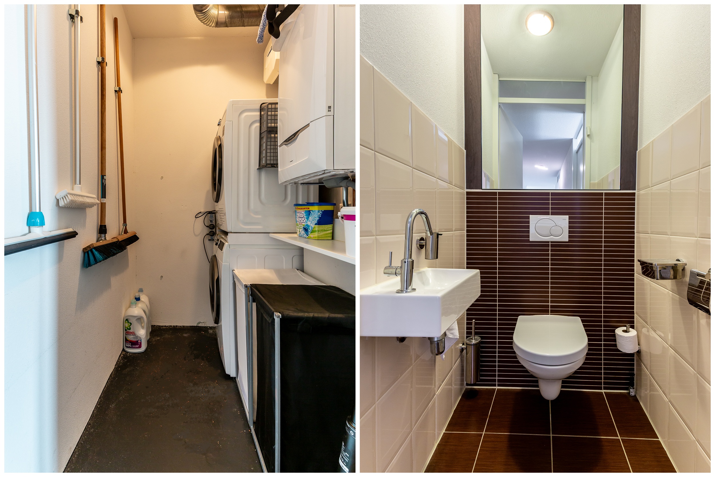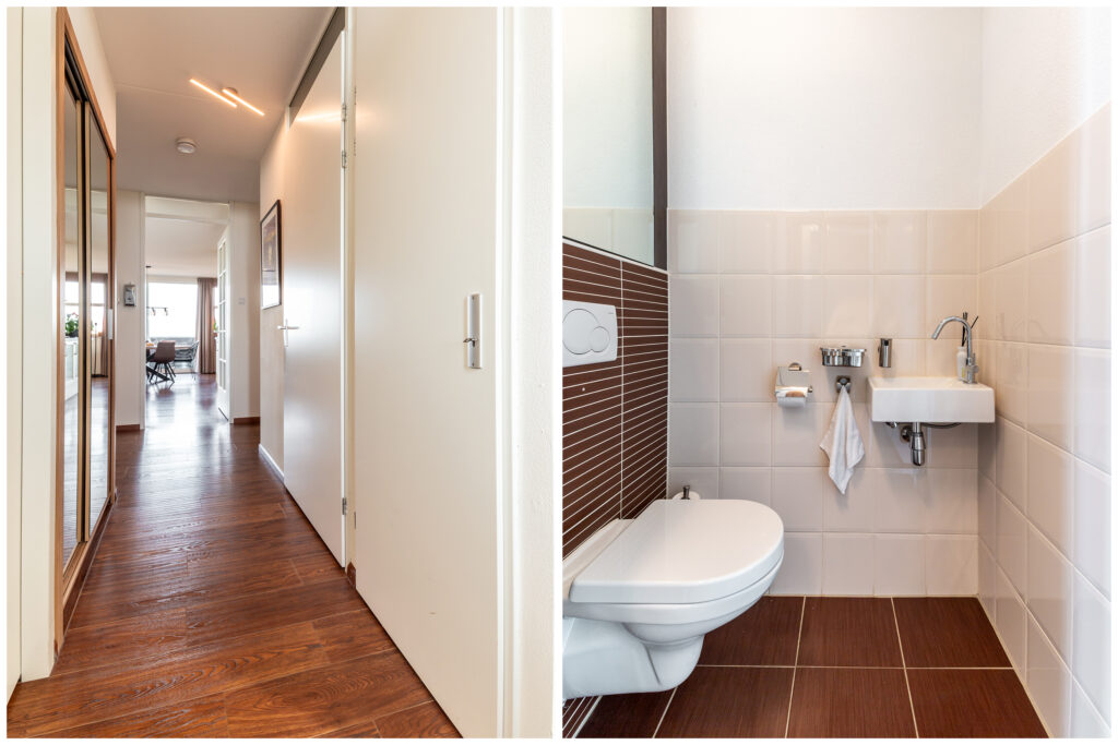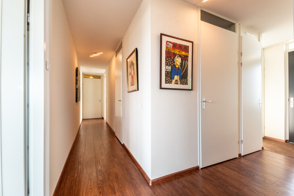Entree/hal met de meterkast, toiletruimte, inpandige berging en toegang tot diverse vertrekken. De schitterende en royale living telt maar liefst 60 m² en is voorzien van grote raampartijen, welke zorgen voor veel natuurlijk daglicht en middels een tweetal schuifpuien is het dakterras te bereiken met een panoramisch uitzicht over de wijk en het Markermeer! De open keuken is uitgevoerd met een kookeiland en voorzien van de volgende (inbouw)apparatuur; Amerikaanse koel-vriescombinatie, vaatwasser, magnetron, Falcon gasfornuis met dubbele Salamander oven en een afzuigkap. Vanuit de woonkamer is de eerste ruime slaapkamer (ca. 16 m²) te bereiken. De andere twee ruime slaapkamers (ca. 20 en 9 m²) bereikt u vanuit de hal, waarbij de grootste slaapkamer is uitgevoerd met een ingebouwde kastenwand en een directe toegang geeft tot de badkamer. Deze badkamer is modern ingericht en voorzien van een ligbad, (inloop)douche, een wastafelmeubel met dubbele spoelbak, vloerverwarming en een designradiator. Verder geeft de hal toegang tot de kantoorruimte (voorheen tweede badkamer, waarbij de aansluitingen nog aanwezig zijn), een tweede toilet en de technische ruimte met de opstelplaats van de cv-ketel (2021), de wasmachine/droger aansluiting en praktische bergruimte. Het appartement is afgewerkt met een mooie laminaatvloer.