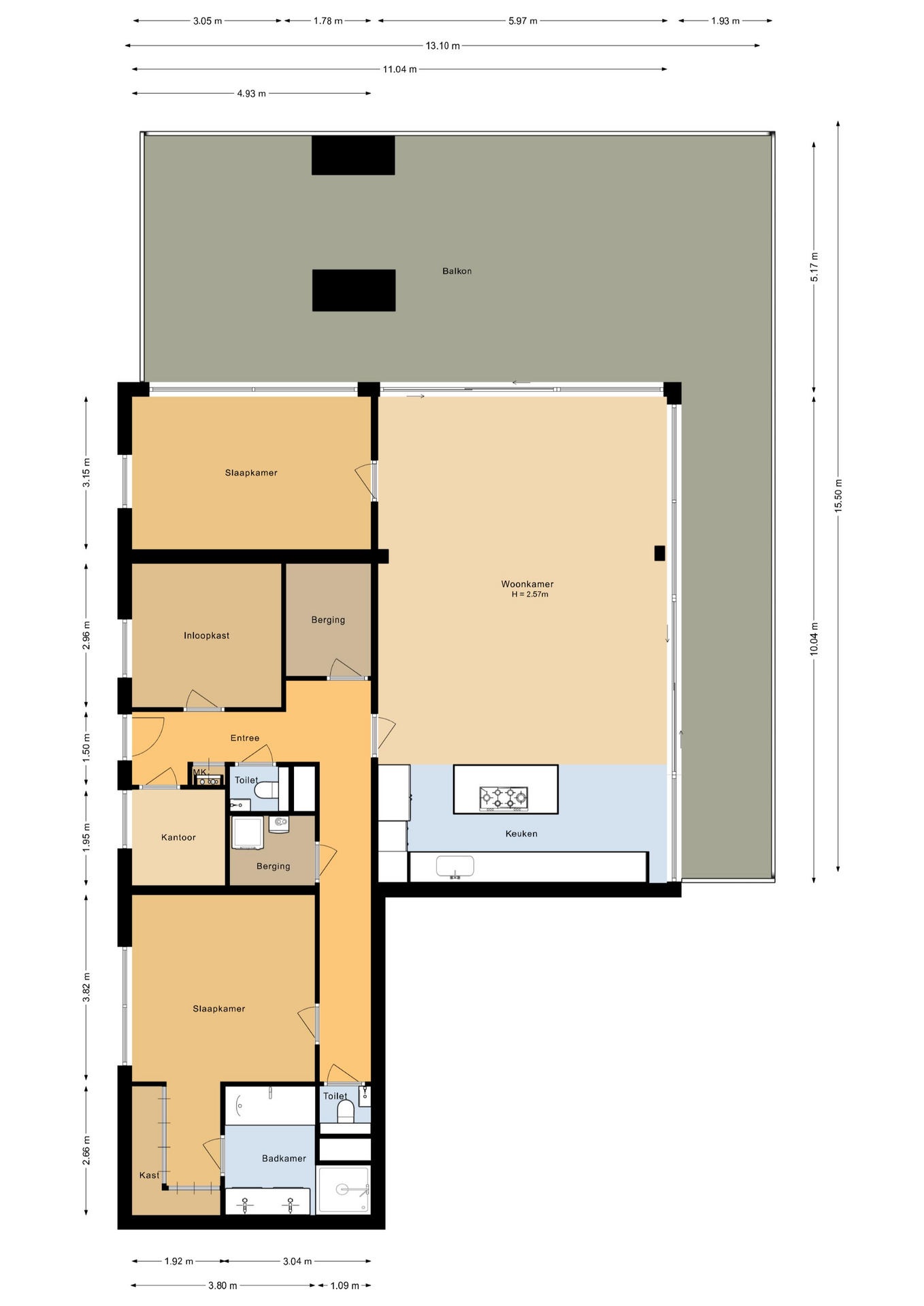 * Het penthouse is voorzien van 3 ruime slaapkamers, een kantoorruimte, een keuken met kookeiland en een moderne badkamer