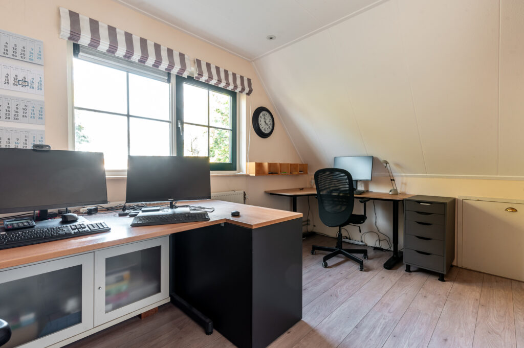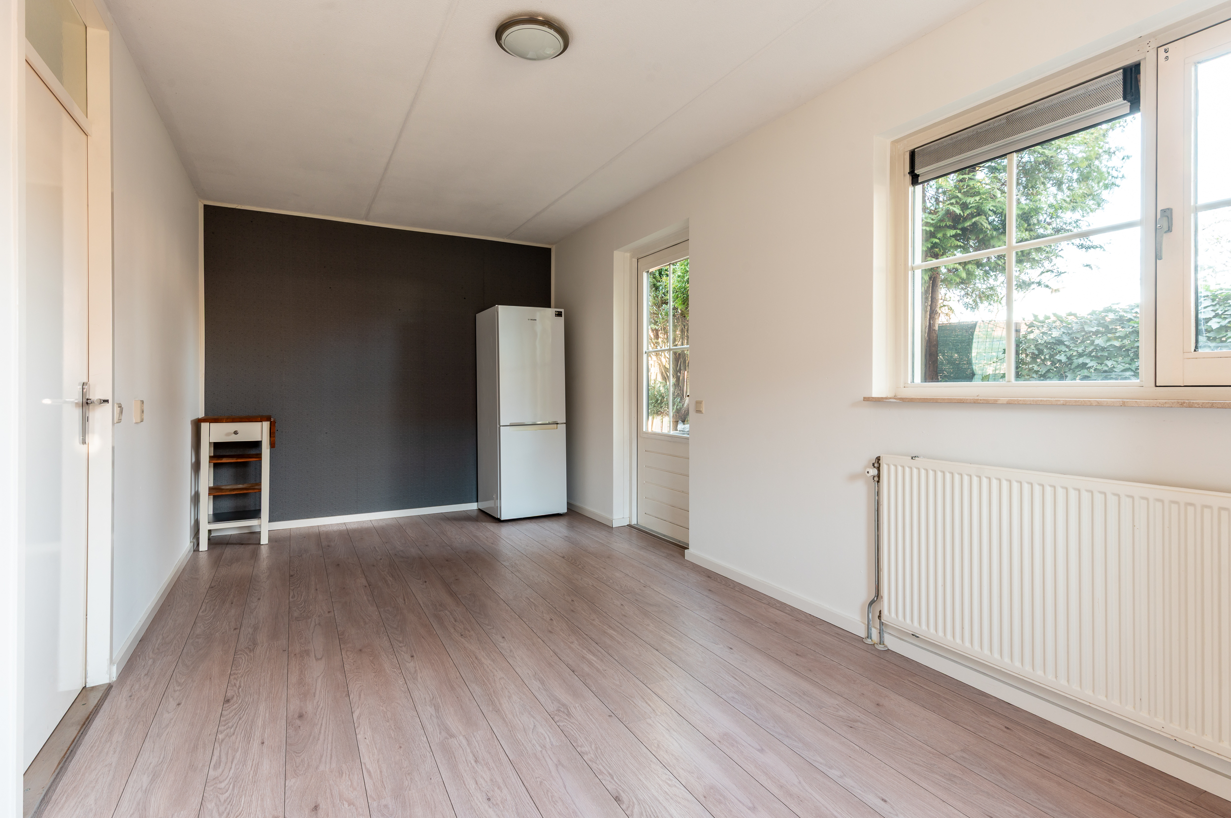 Via de woonkeuken is tevens de slaapkamer op de begane grond bereikbaar. Deze kamer is ruim van opzet (ca. 18 m²) en beschikt over de opstelplaats van de cv-ketel. Dankzij de royale afmetingen zijn hier volop mogelijkheden om relatief eenvoudig een badkamer te realiseren, waardoor gelijkvloers wonen goed tot de opties behoort. Daarnaast beschikt deze kamer over een eigen loopdeur naar de achtertuin, waardoor u hier op elk moment van de dag zo naar buiten stapt!