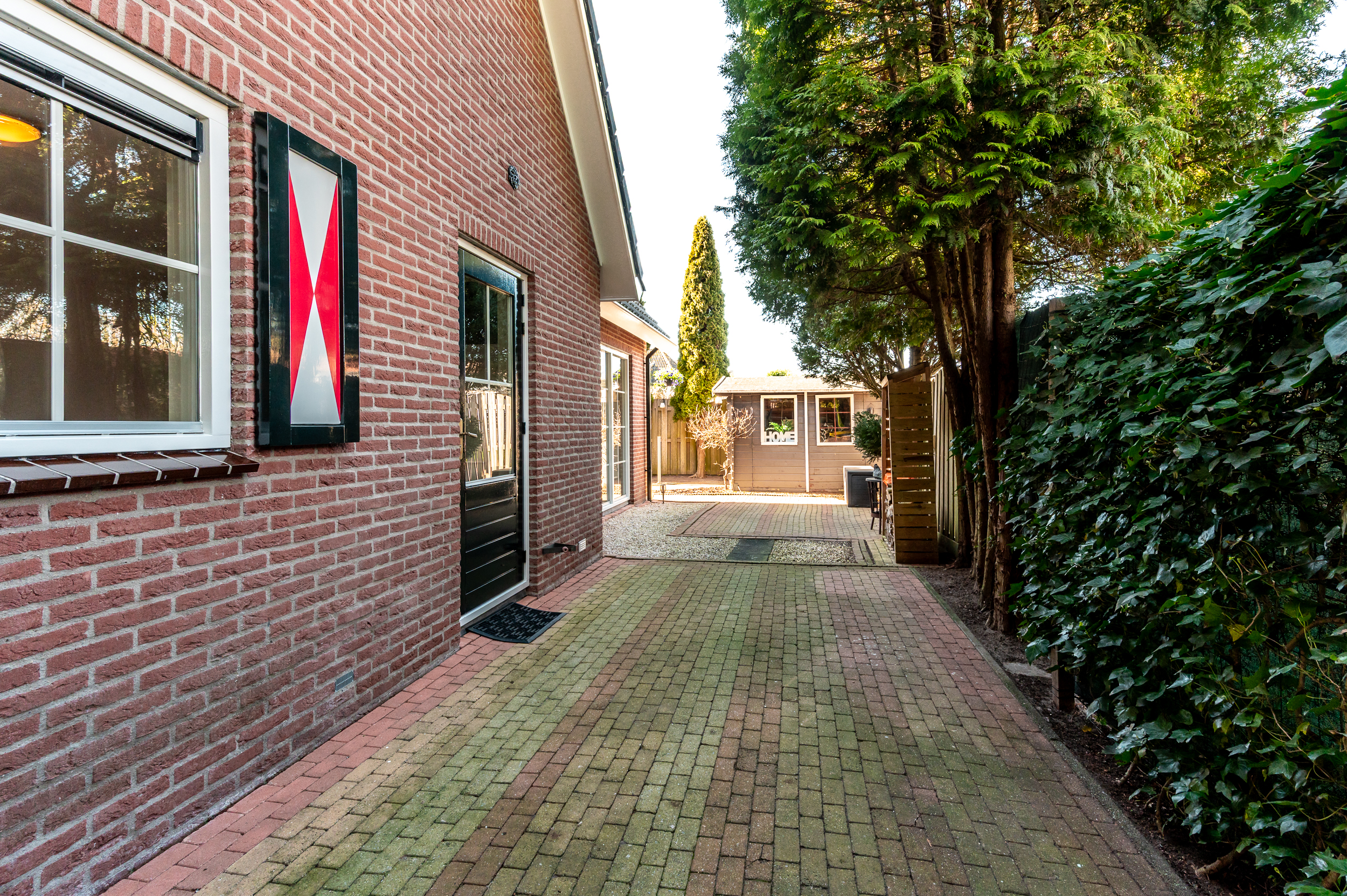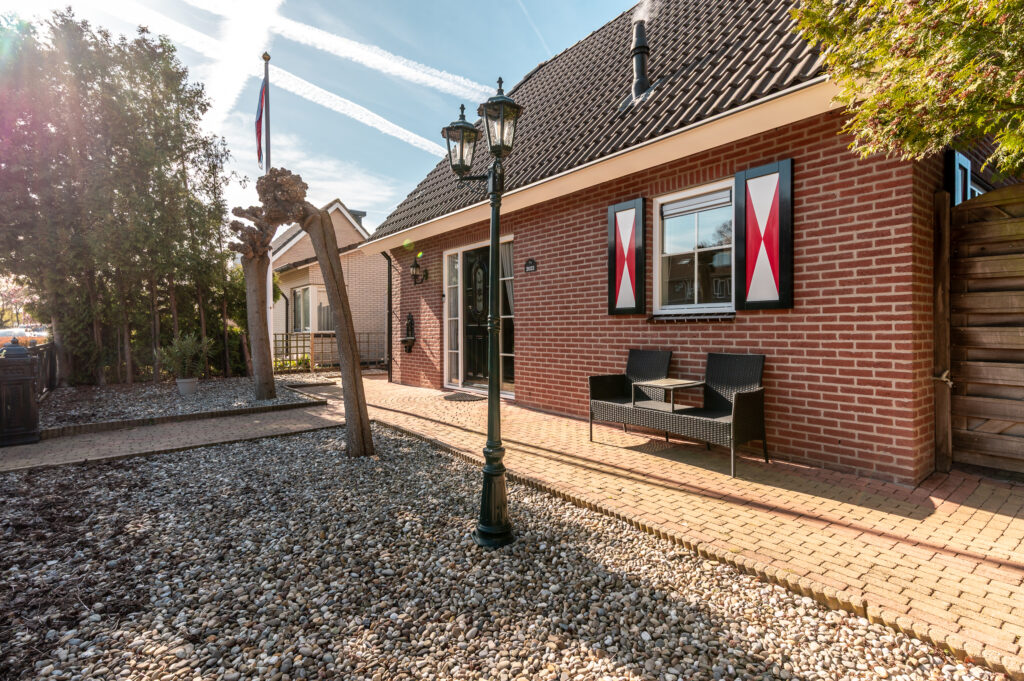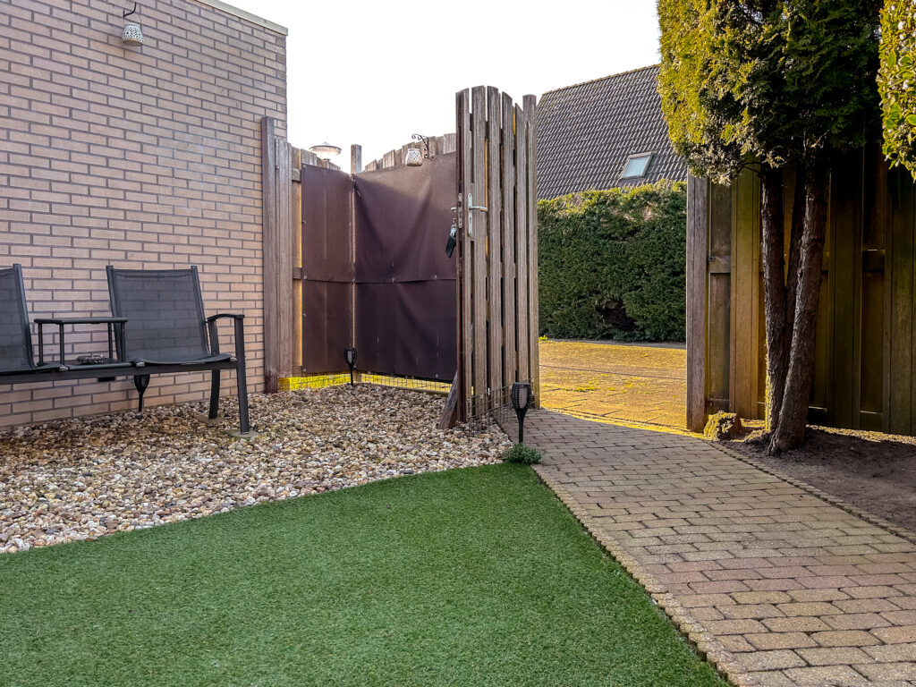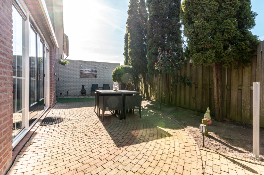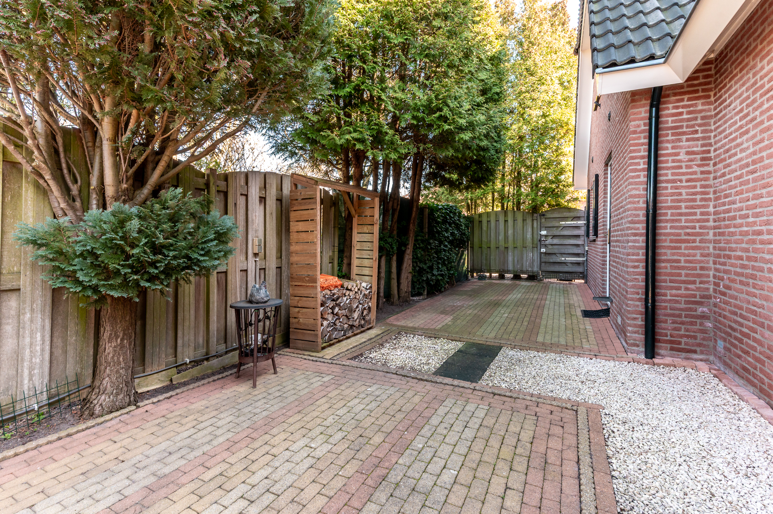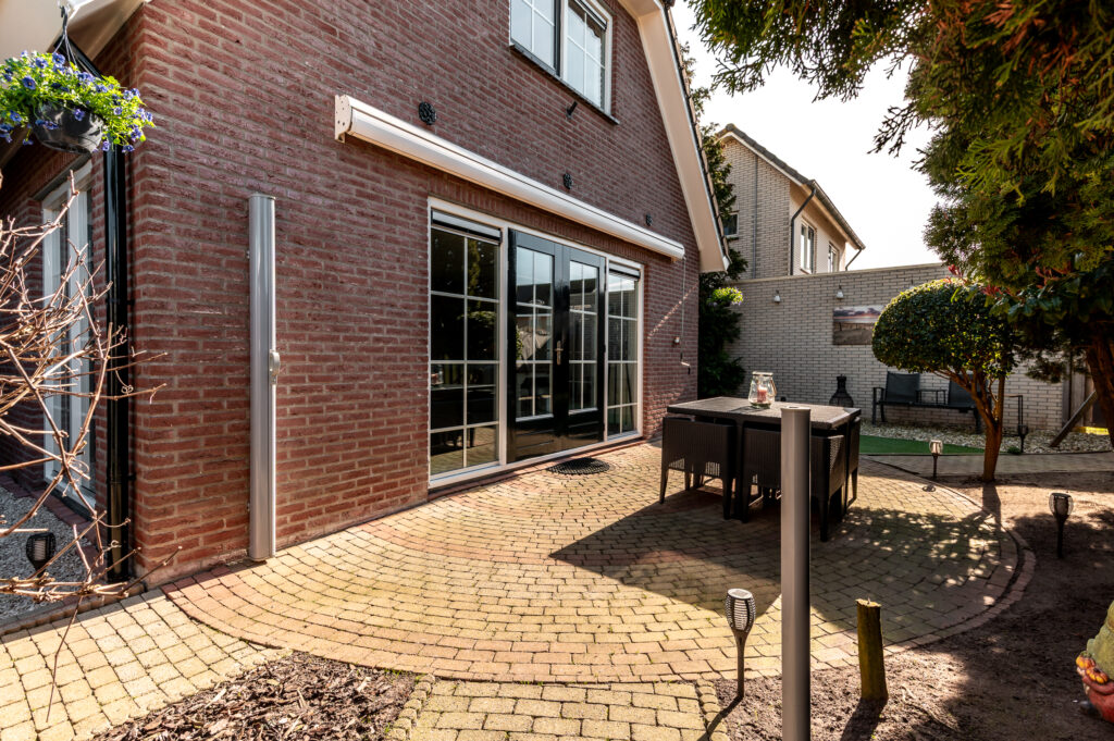 De sfeervol aangelegde achtertuin vormt een heerlijke plek om te ontspannen. Dankzij de ligging rondom en achtertuin richting het noordwesten vindt u hier altijd wel een zonnig plekje of juist een fijne schaduwplek. De achtertuin biedt veel privacy en rust, is bereikbaar via een achterom en voorzien van een groot zonnescherm. Een heerlijke plek om samen te komen en om in alle rust van het buitenleven te genieten.
