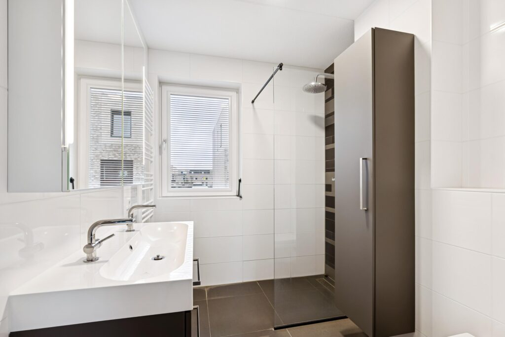 Op de eerste verdieping bevinden zich drie goed bemeten slaapkamers, allen comfortabel en licht. De moderne badkamer is eveneens op deze verdieping gesitueerd en is compleet uitgevoerd met een inloopdouche, dubbele wastafel met meubel, toilet en een designradiator. Zowel natuurlijke als mechanische ventilatie zorgen hier voor een prettig en gezond binnenklimaat.