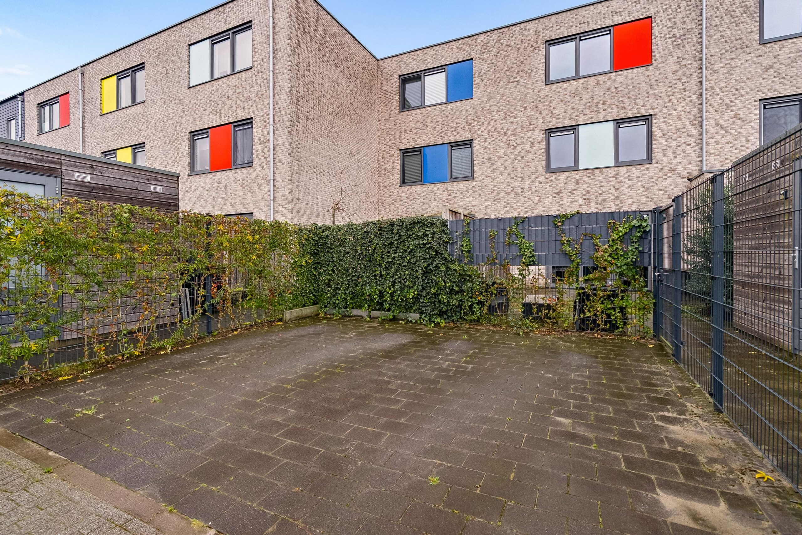 De voortuin ligt op het zuidoosten en is volledig betegeld.
