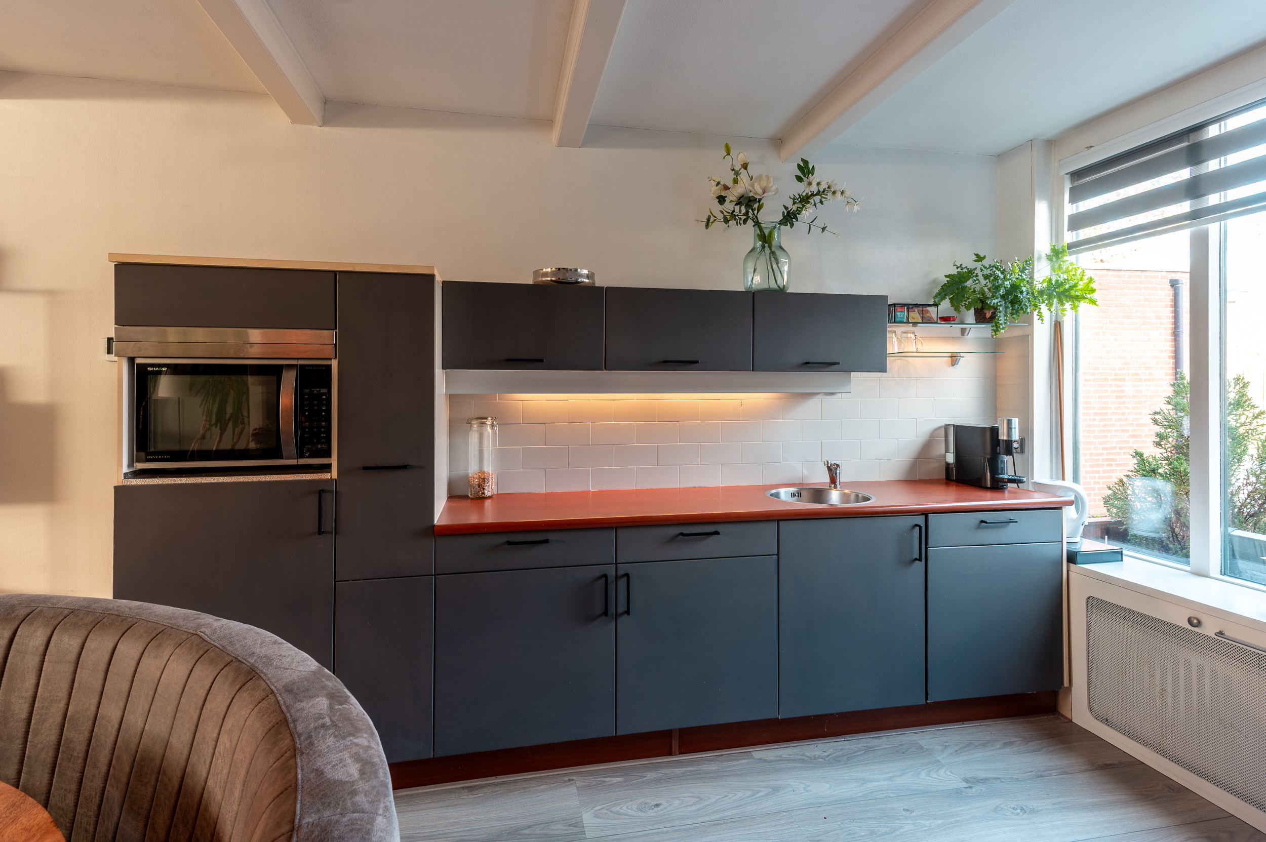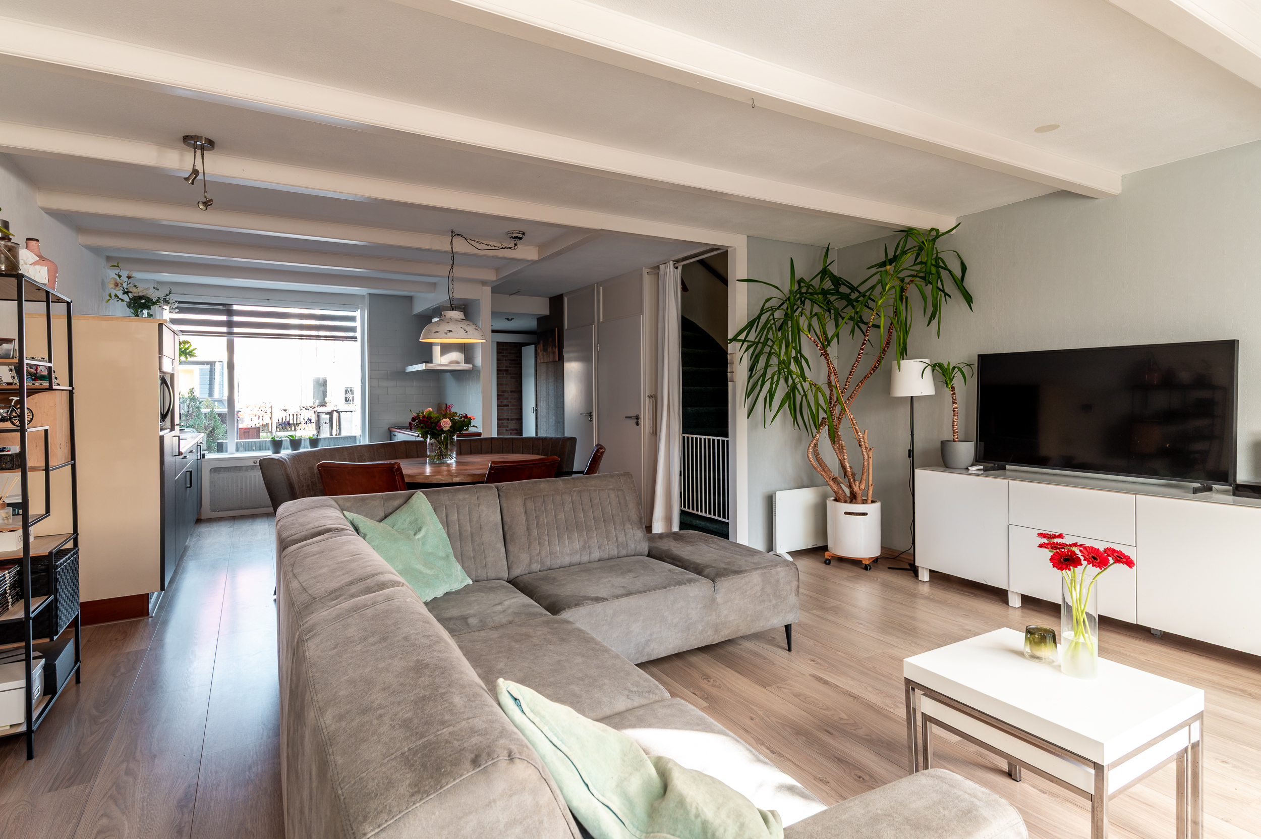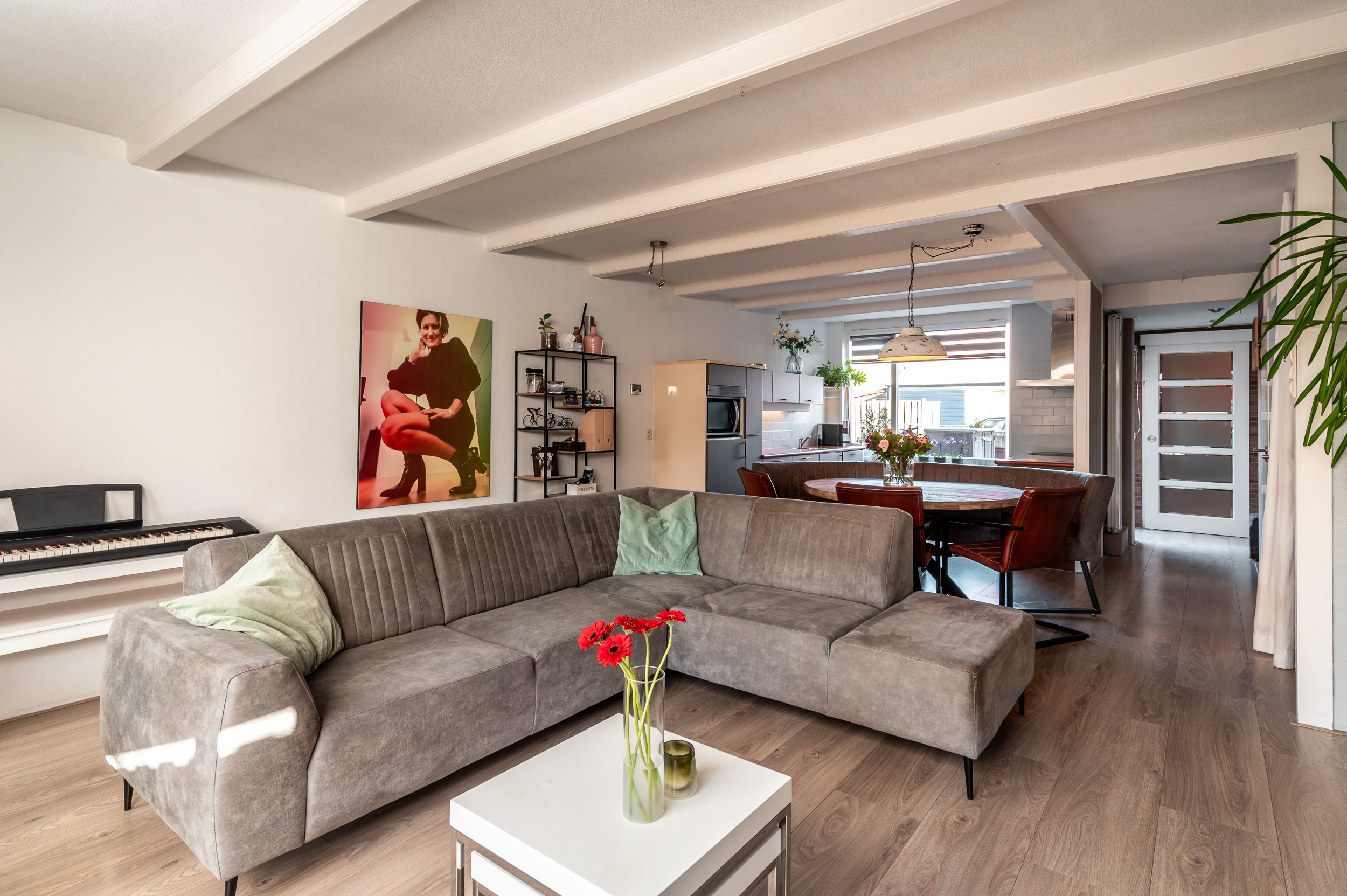 De begane grond is voorzien van een laminaatvloer.