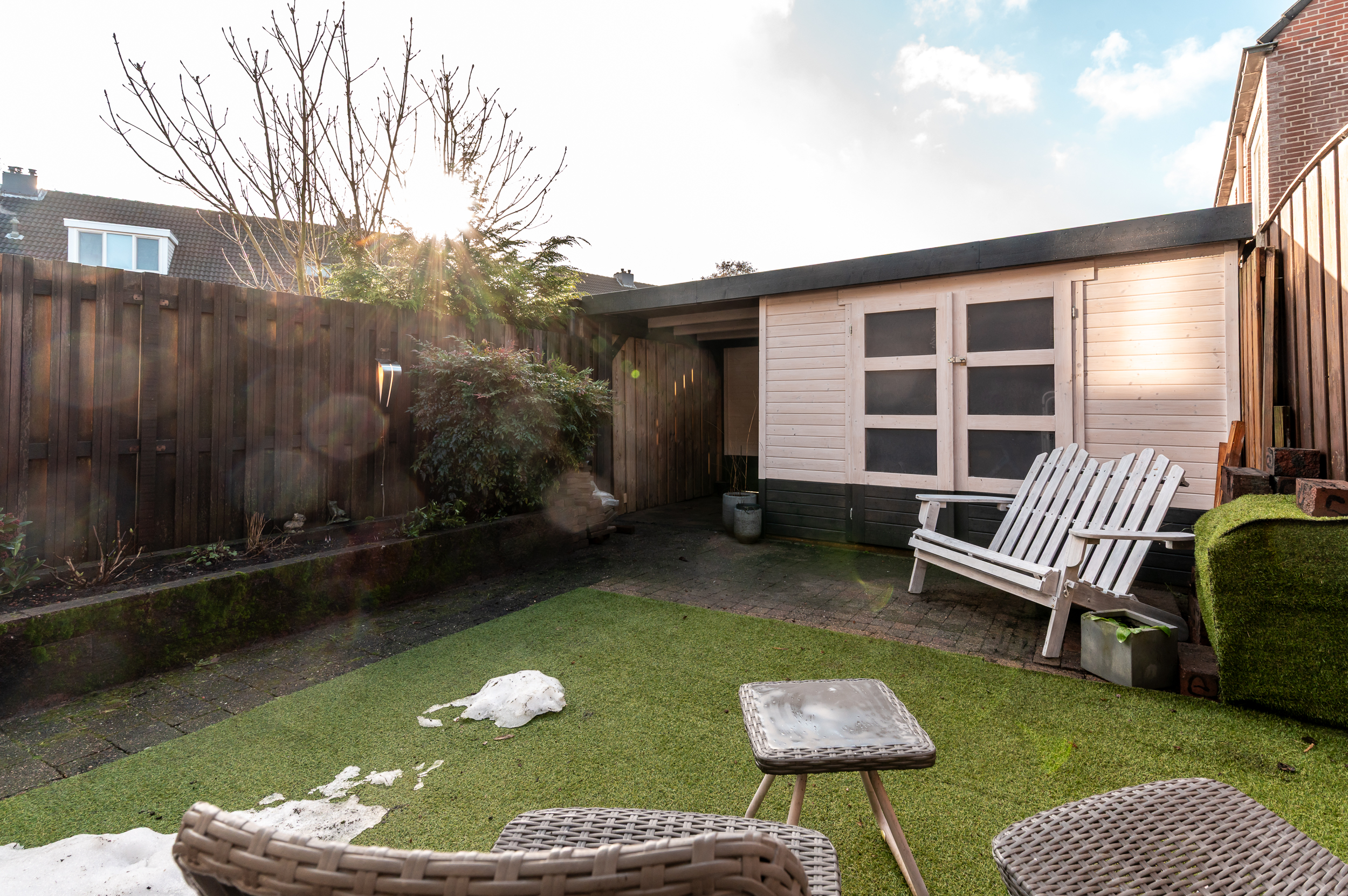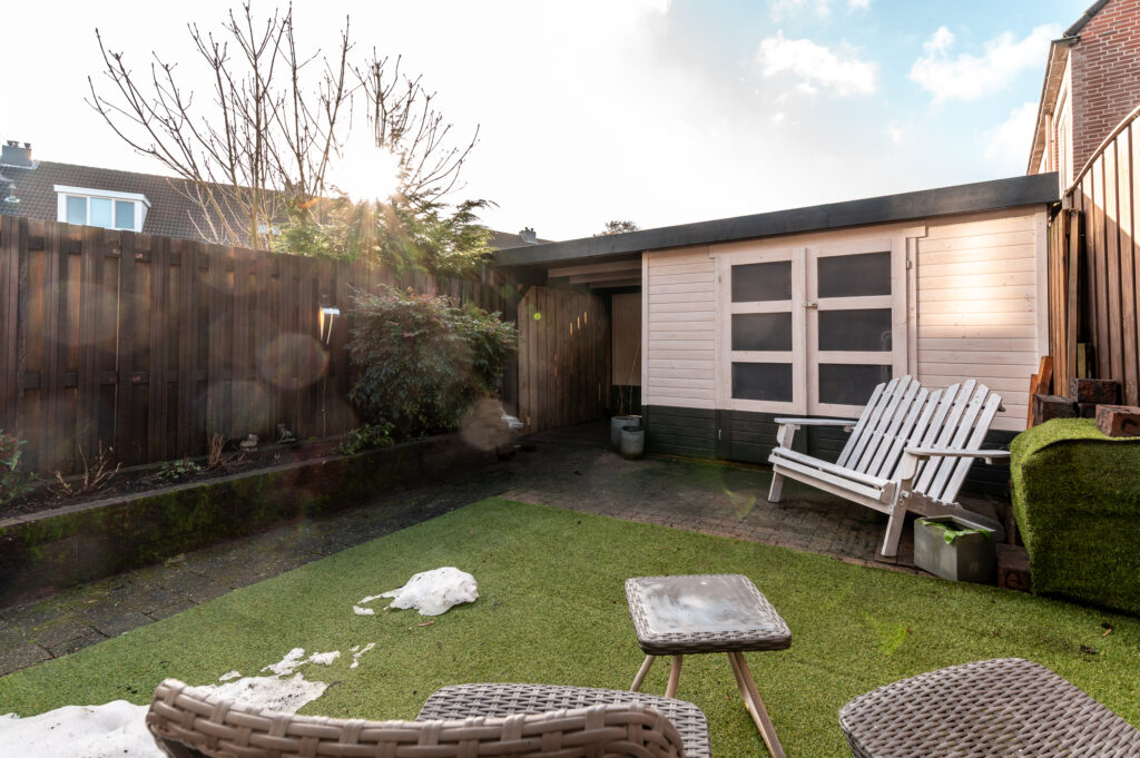 * De schuur in de achtertuin is geplaatst in september 2025;