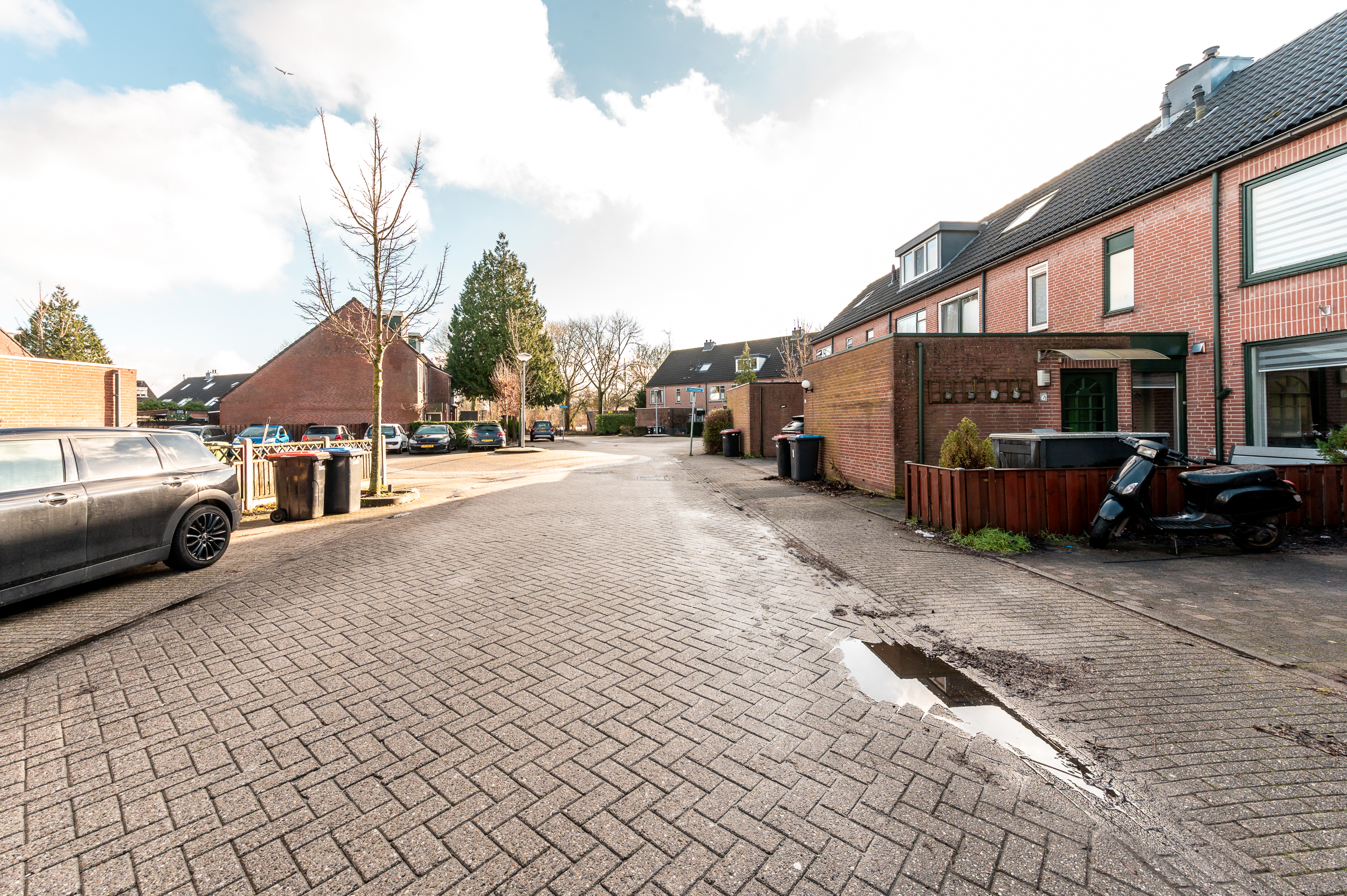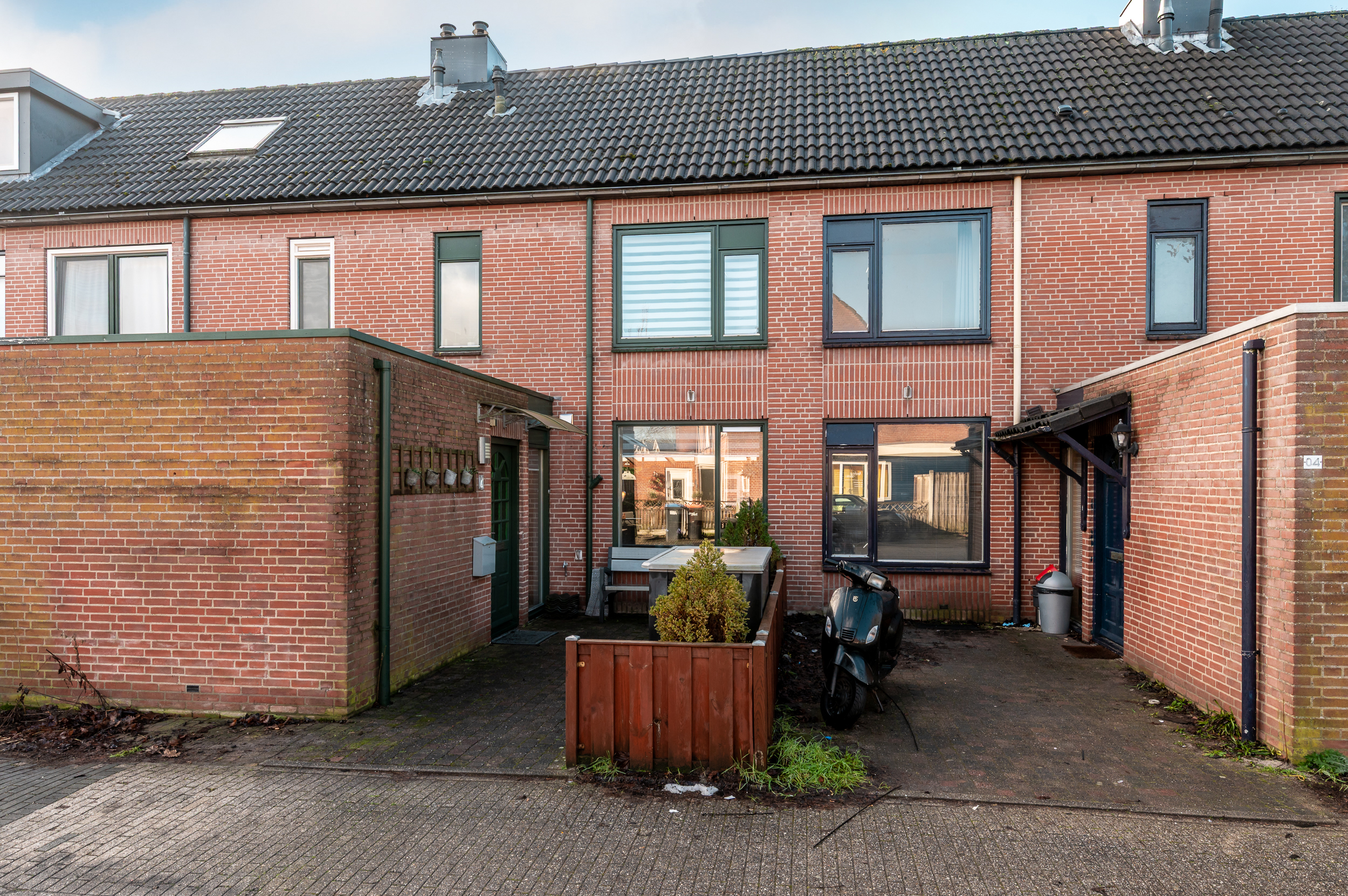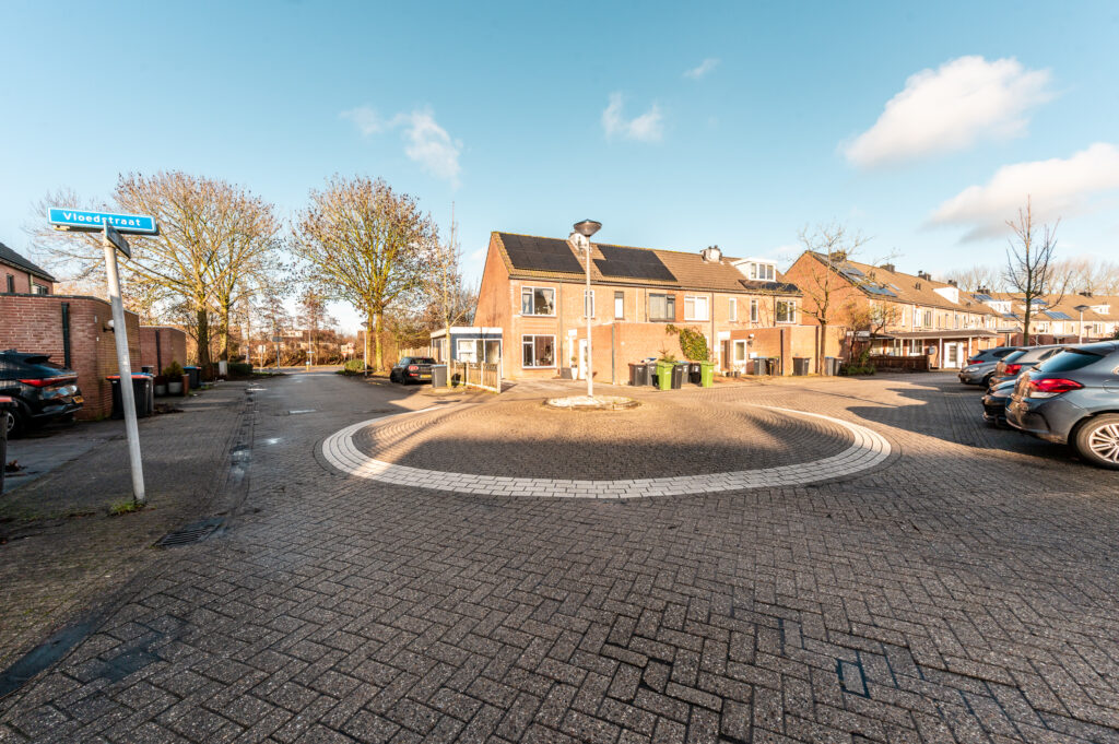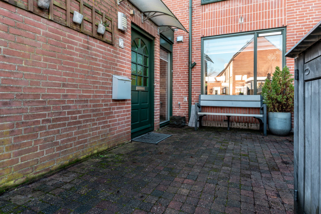 De voortuin is gelegen op het noordoosten. Parkeren doet u eenvoudig op eigen terrein of op één van de openbare parkeerplaatsen.