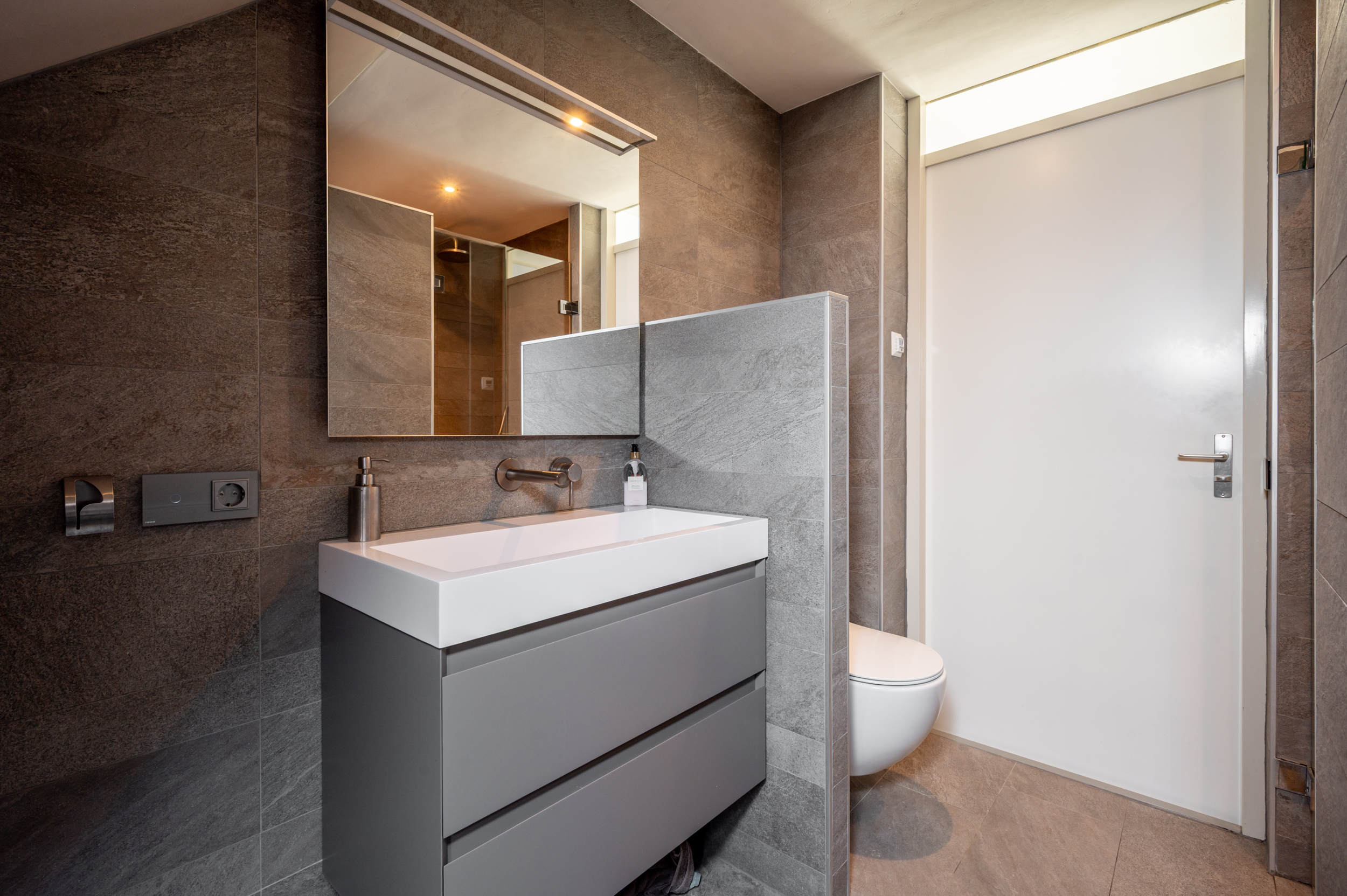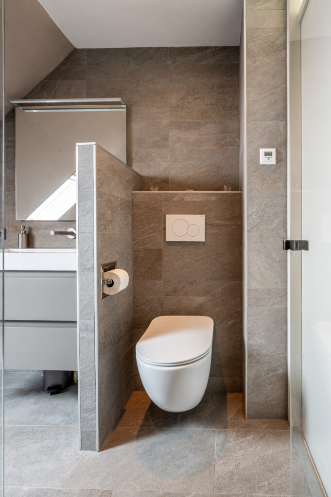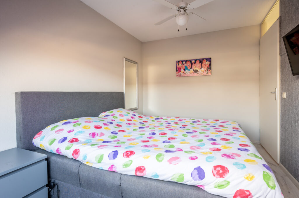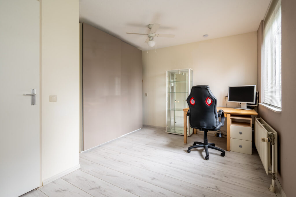 Overloop met toegang tot 2 (voorheen 3) slaapkamers (ca. 15 en 11 m2), waarbij 1 slaapkamer over de volle breedte van de woning. Luxe badkamer (2020) met een ingebouwde thermostaatkraan en douche, 2e toilet, wastafelmeubel, elektrische vloerverwarming en een raam voor de natuurlijke ventilatie. De verdieping is voorzien van een laminaatvloer.