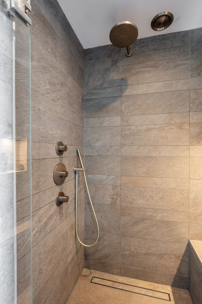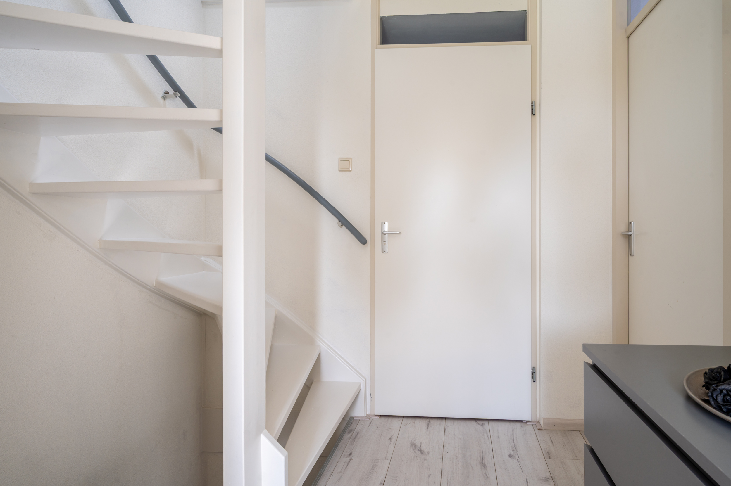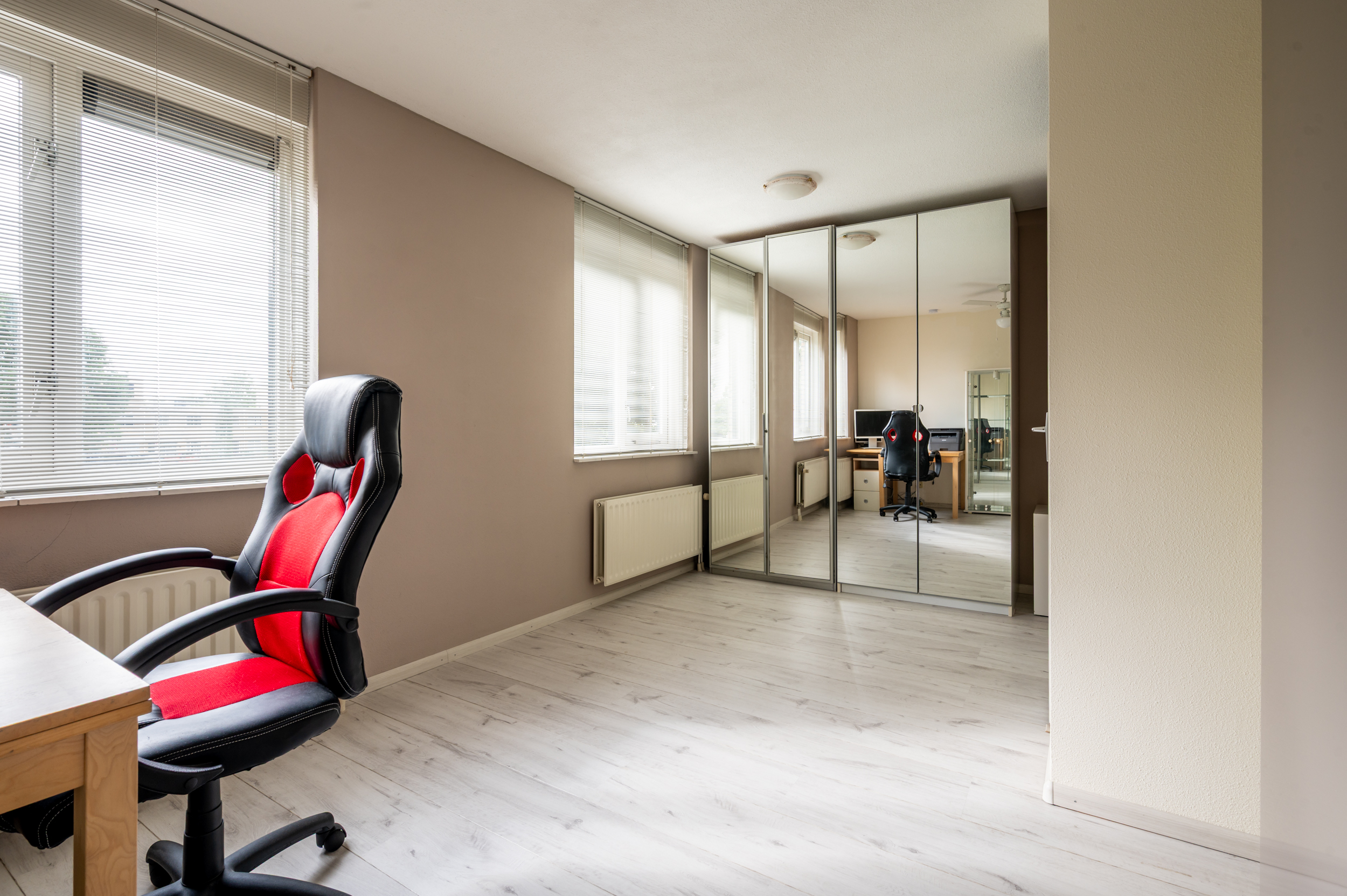 Overloop met toegang tot 2 (voorheen 3) slaapkamers (ca. 15 en 11 m2), waarbij 1 slaapkamer over de volle breedte van de woning. Luxe badkamer (2020) met een ingebouwde thermostaatkraan en douche, 2e toilet, wastafelmeubel, elektrische vloerverwarming en een raam voor de natuurlijke ventilatie. De verdieping is voorzien van een laminaatvloer.