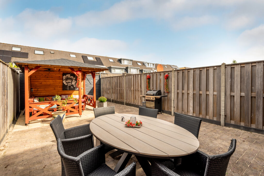 * Verzorgd aangelegde tuin met een ligging op het noordwesten (middag + avondzon), een overkapping en een vrijstaande berging (ca. 7 m2)