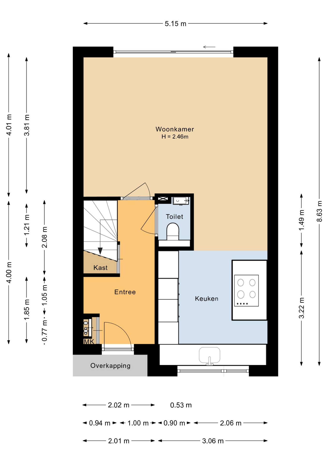 Entree/hal met de meterkast, garderobe, luxe toiletruimte (2020), bergkast, trapopgang naar de verdieping en toegang naar de woonkamer. Een fraaie tuingerichte woonkamer van 5,15 meter breed, welke middels een grote schuifpui toegang geeft naar de tuin. Ruime opstelmogelijkheden voor een eettafel, waar u heerlijk met vrienden en familie kunt dineren. Aan de voorzijde bevindt zich de moderne inbouwkeuken (2020) met kookeiland, welke voorzien is van de volgende apparatuur; koelkast, vriezer, vaatwasser, Pyrolyse oven, combimagnetron en een 4-pits inductiekookplaat met aparte Downdraft. Vanuit de keuken kijkt u fraai vrij weg over de stadsgracht en het groen. De begane grond is voorzien van een lichte tegelvloer met vloerverwarming.