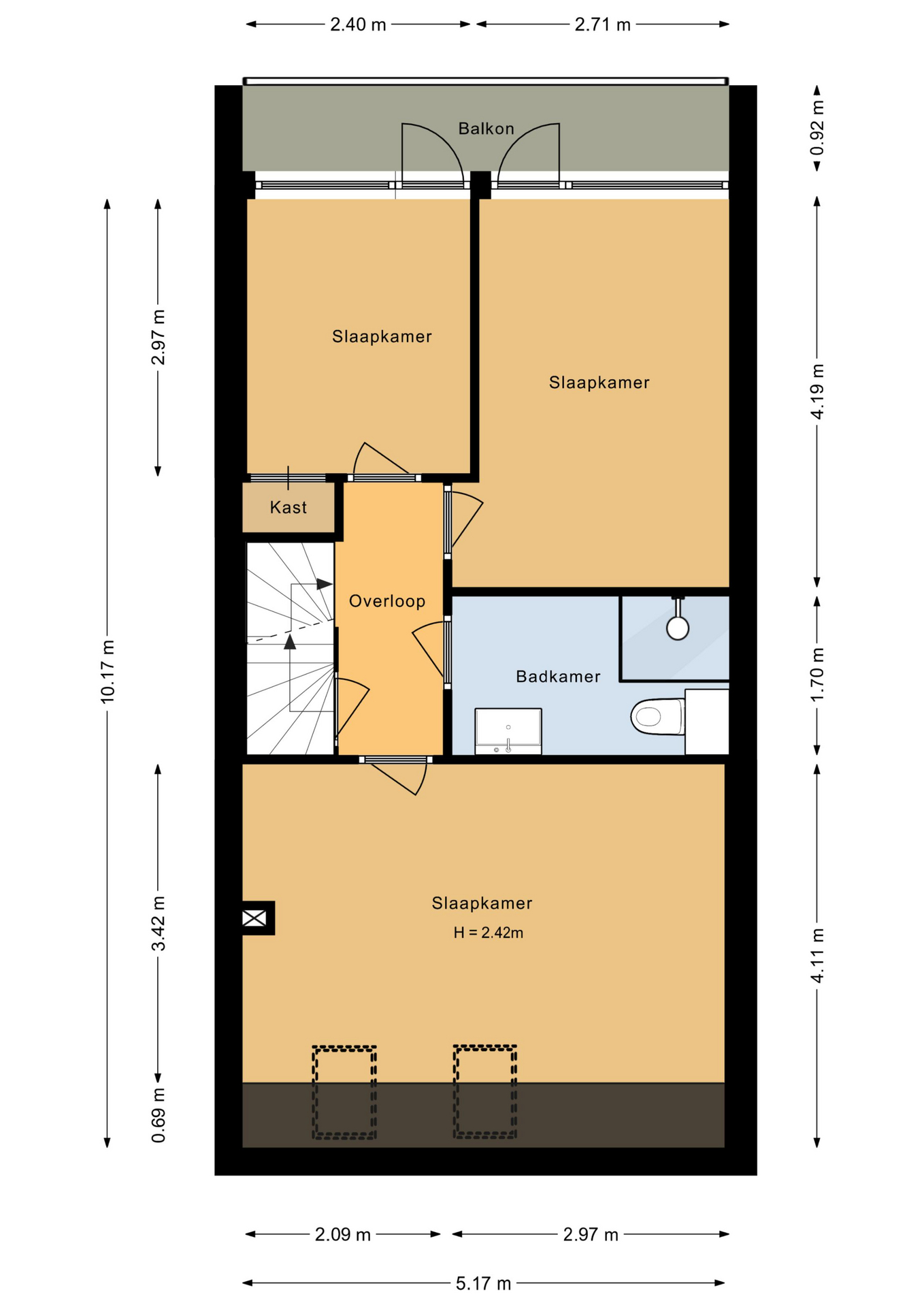 * De 2 slaapkamers aan de achterzijde geven toegang tot een ruim balkon (ca. 5 m2)