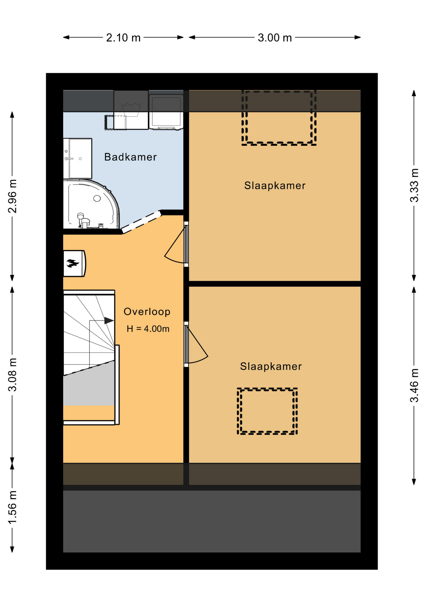 Via vaste trap te bereiken verdieping. Overloop met de cv-ketel (2016 / huur), wasruimte met de wasmachine/drogeropstelling, een bergvliering en veel praktische bergruimte. Momenteel staat er een douchecabine in de wasruimte, deze kan naar wens van koper blijven staan of gedemonteerd worden. Toegang tot 2 ruime slaapkamers (ca. 9 en 9 m2), beide voorzien van een dakraam. De verdieping is voorzien van een fraaie PVC-vloer (2022).