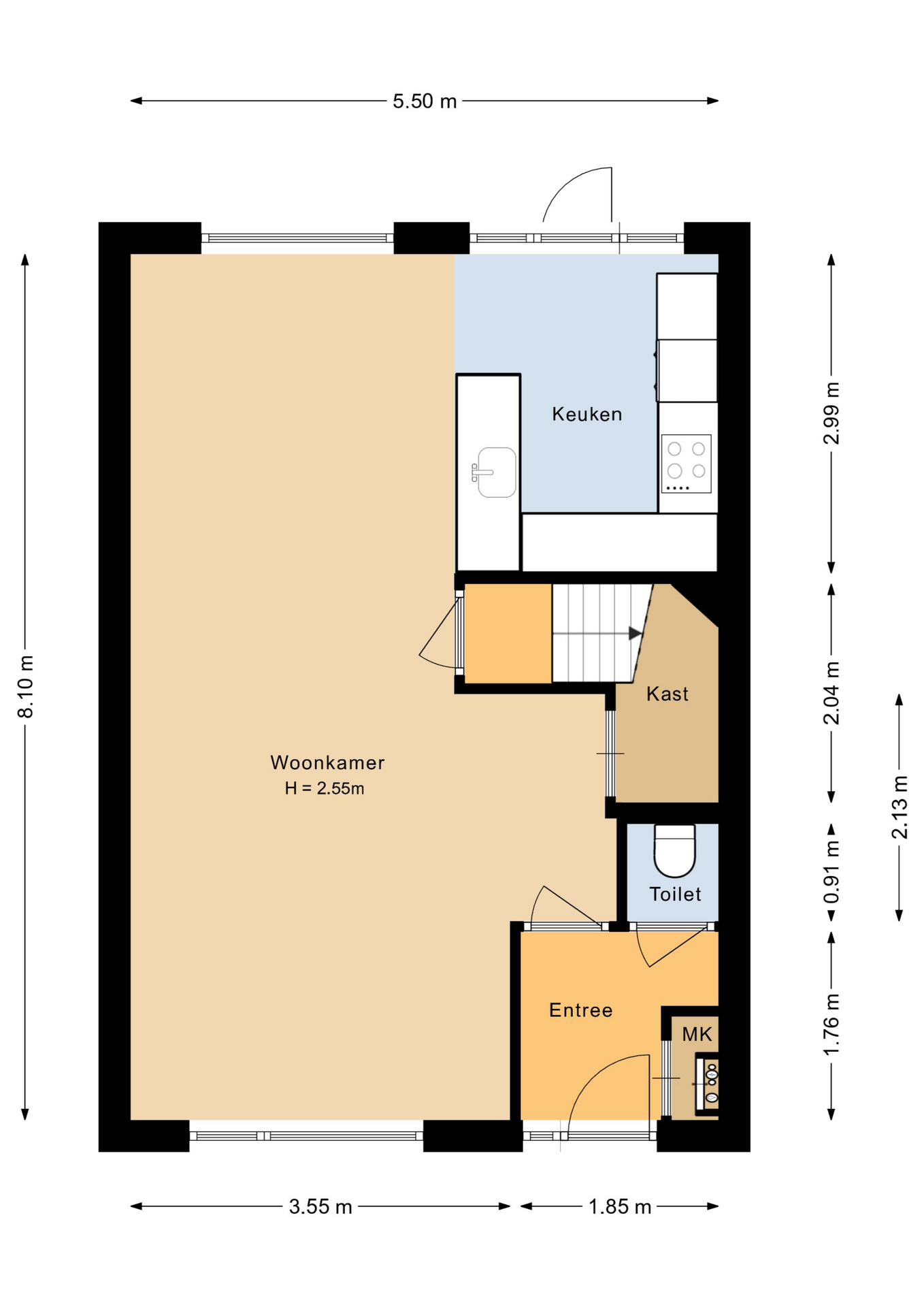 Entree/hal met de meterkast (2020), toiletruimte (2021) en toegang tot de woonkamer. Ruime straatgerichte woonkamer met grote raampartijen, een fraaie PVC-vloer (2024), een praktische trapkast en een tussen portaal met de trapopgang naar de verdieping. Vanuit de woonkamer kijkt u heerlijk vrij weg. Ruime opstelmogelijkheden voor een grote eettafel waar u heerlijk met vrienden en familie kunt dineren. Aan de achterzijde bevindt zich de luxe inbouwkeuken (2021), welke voorzien is van de volgende apparatuur; koelkast, vriezer, vaatwasser, combi-oven, 4-pits inductiekookplaat en een afzuigkap. Vanuit de keuken is middels een deur de tuin te bereiken.