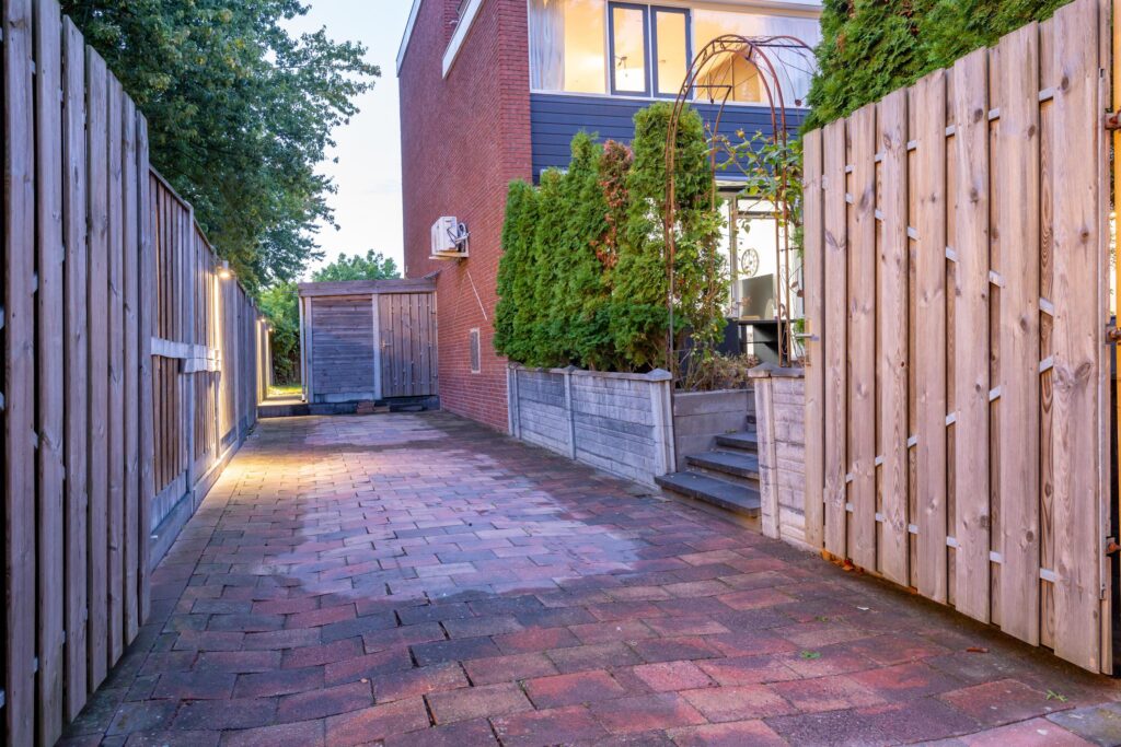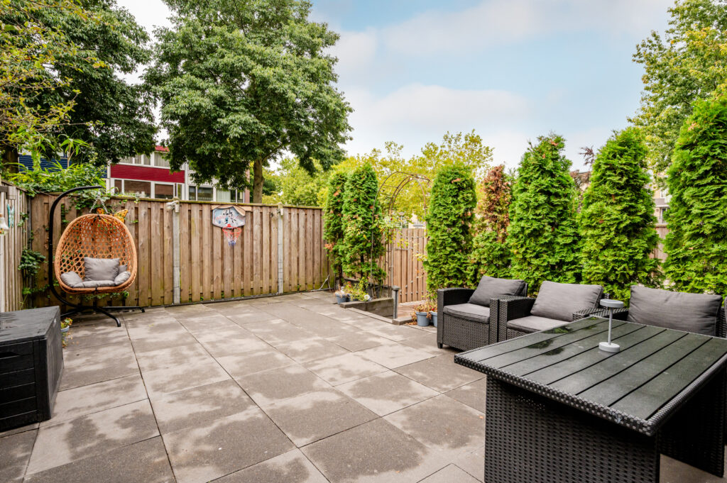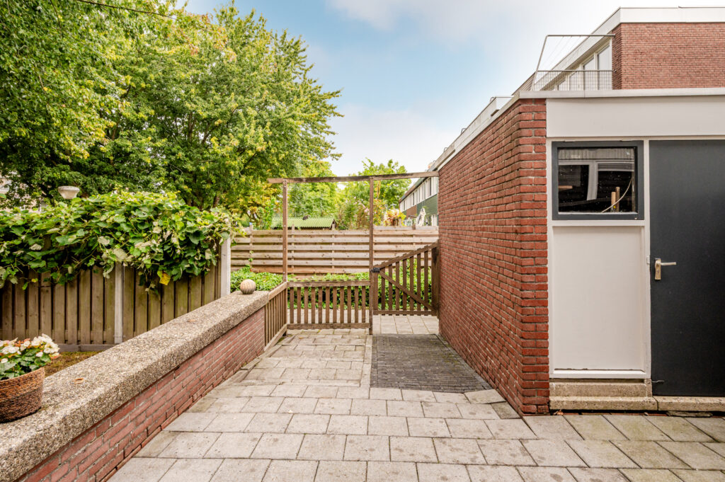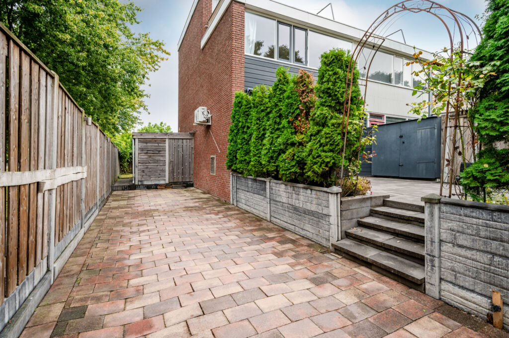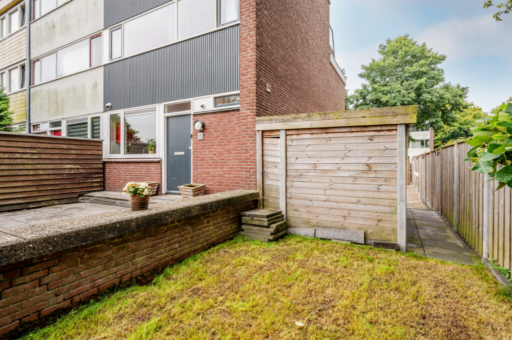 De verzorgd aangelegde tuin heeft een ligging op het zuiden en is voorzien van bestrating, buitenzonwering, een praktische bergkast, een aangebouwde houten berging (ca. 11 m2), vernieuwde hout/beton schuttingen en parkeergelegenheid voor meerdere auto's op eigen terrein. De tuin is onderhoudsarm aangelegd en geeft veel privacy!