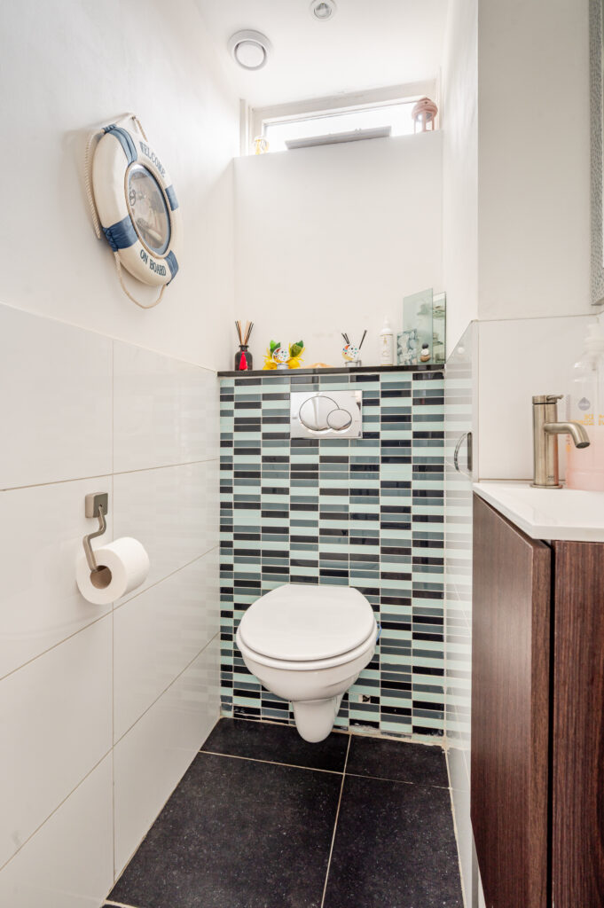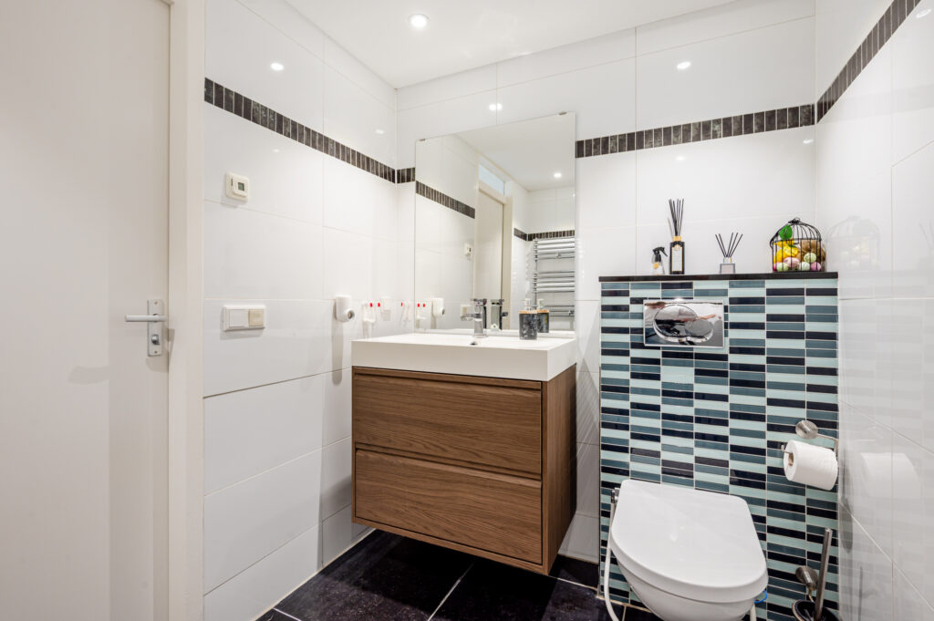Overloop met toegang tot 3 ruime slaapkamers (ca. 17 / 9 / 6 m2), waarbij de ouderslaapkamer over de volle breedte van de woning. Moderne badkamer (2011) met een (inloop)douche, 2e toilet, wastafelmeubel (2025), vloerverwarming en een designradiator. De verdieping is voorzien van een mooie laminaatvloer.