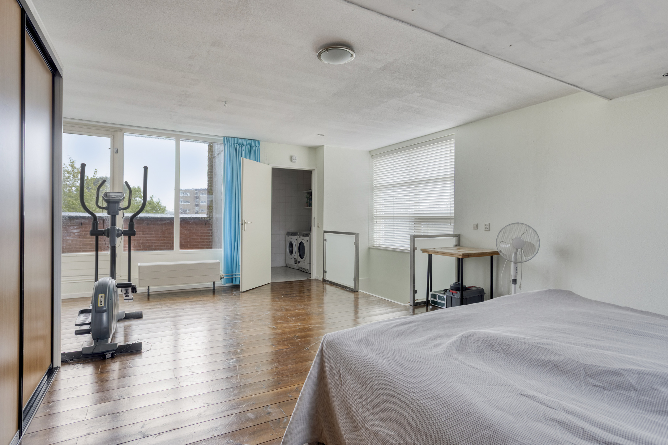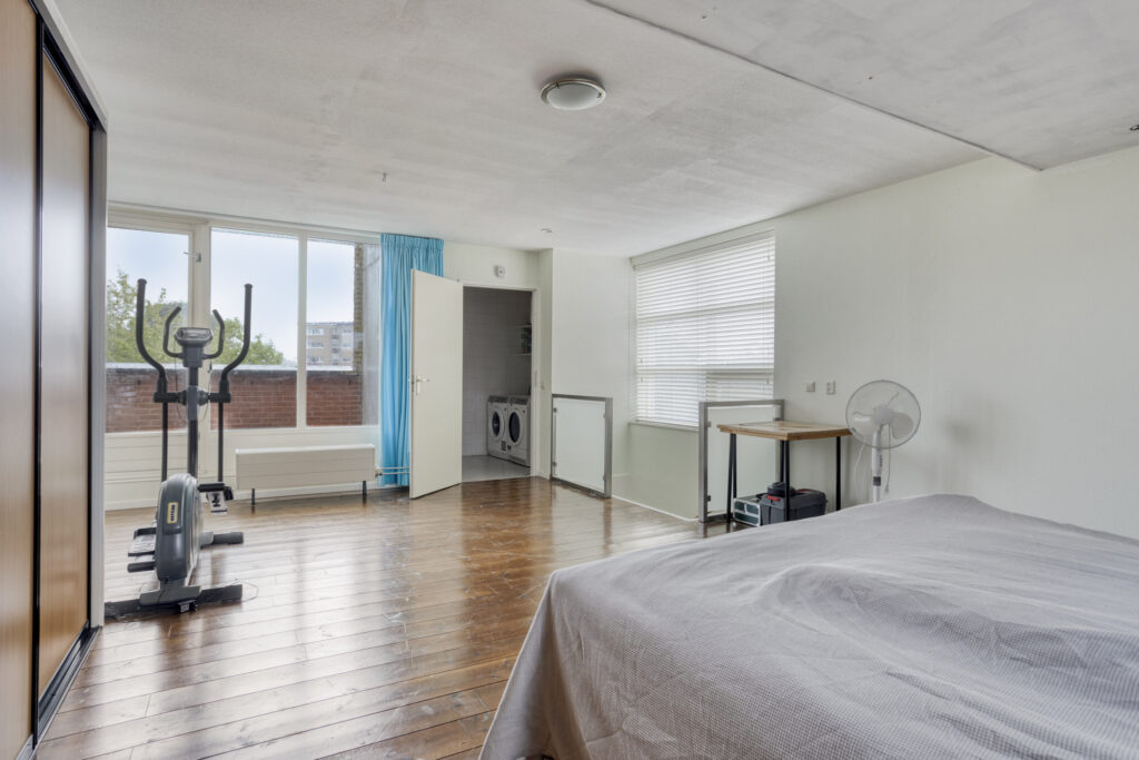 Slaapkamer 4 (ca. 32 m²) met toegang naar balkon, aparte ruimte met opstelling wassen-/drogen en opstelling CV-ketel.