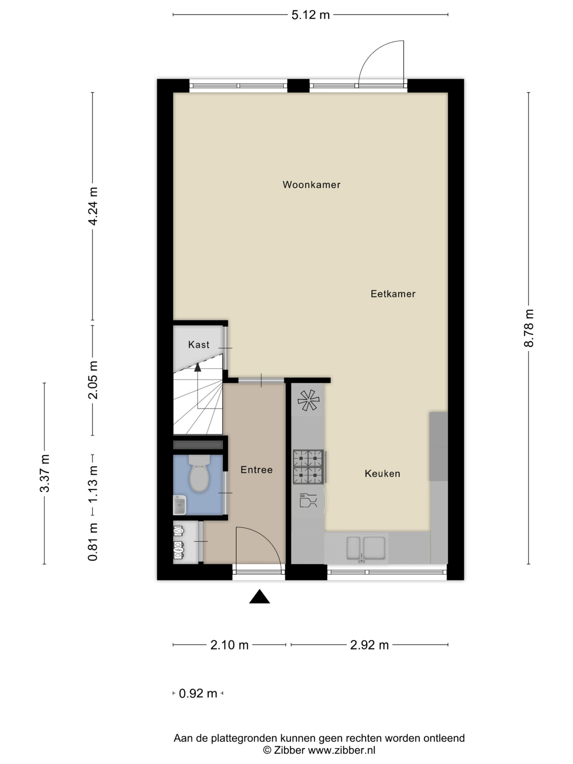 Entree, hal, toilet met fonteintje, ruime en lichte woonkamer (ca. 25 m²) met deur naar de tuin, trapkast, ruime open keuken voorzien van diverse inbouwapparatuur.